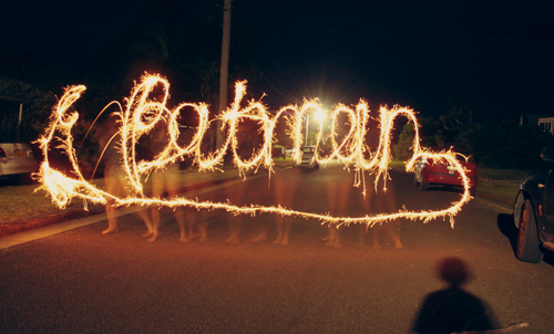 I attempted to write "Pineneedle" in the one below, but failed pretty badly. It kind of looks like it says Pineneedle, right? And because Johnson is also a 13 year old boy, I was obliged to do one that said "Batman".