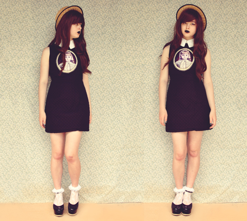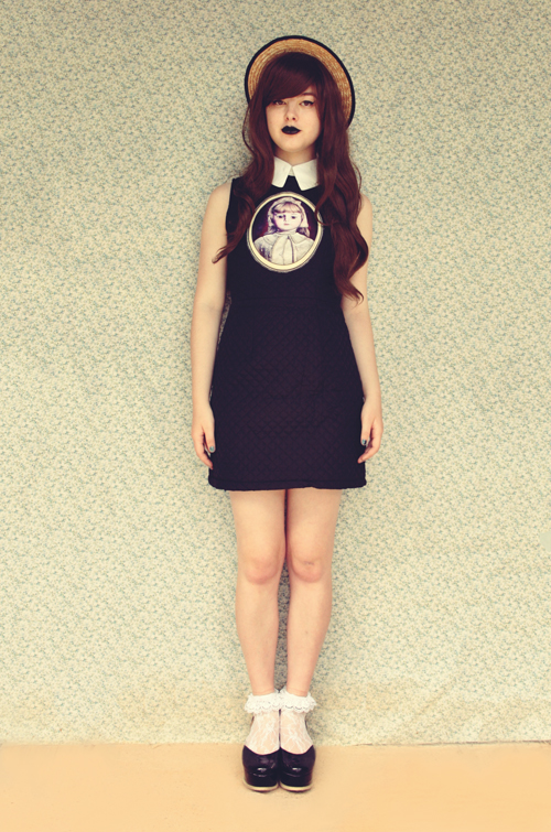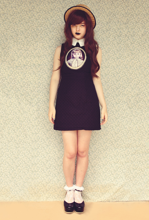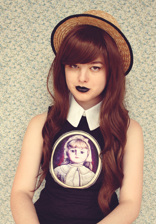 Aw this dress is so cool! I like the creepy doll on it and how you drew inspiration from it. I wish I could pull off black lipstick like you too! You always look so cool when you wear it.