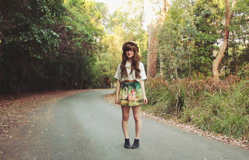 A nice thing I did yesterday, though, was to go op-shopping in a country town! For any serious op-shoppers/thrifters reading this, you will know that country town charity stores are gold. They don't attract the flocks of hipsters that city stores do, or the ridiculously marked-up prices. I filled two massive plastic bags with vintage goodies for $30 - and in these bags I managed to squeeze around 30 or so items, so I'm pretty happy with that! This blouse and belt you see me wearing are just two of my finds.