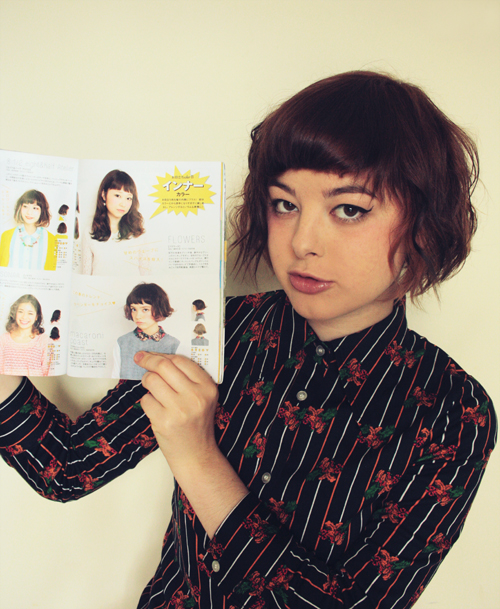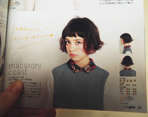 If you're a new or not-so-regular reader of this blog, you may not be aware that I had given up on my real hair and taken to wearing wigs all the time. Unfortunately, my real hair is not so super long and curly and luscious as this. In fact, my real-life-hair had become very brittle, thin and damaged due to a combination of medications and trying to maintain a near-white colour so that it could be bright pink and blue (and green and lilac) all through the first half of last year. It was getting to the point where if I wasn't wearing a wig, I'd feel really awful about my appearance all day. And that's no good. I haven't been to a hairdresser in such a loooong time, but yesterday I thought I'd finally go and get them to try and replicate, if at all possible, this particular hair cut from a magazine I picked up in Japan. (By the way, if you follow me on facebook, this hair cut is your doing because you all told me to go for it! And I thank you for that.)