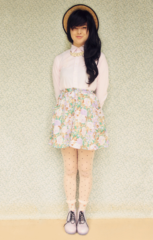 I love the floral socks and floral skirt paired together. This outfit is so perfect for spring. Your pastel shirt is gorgeous too. I'm also loving the print mixing here. Dots and florals just look so great together.