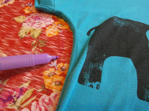 7. Lastly, hem the arm holes and the bottom of the shirt. This step is optional because knits don't unravel easily.