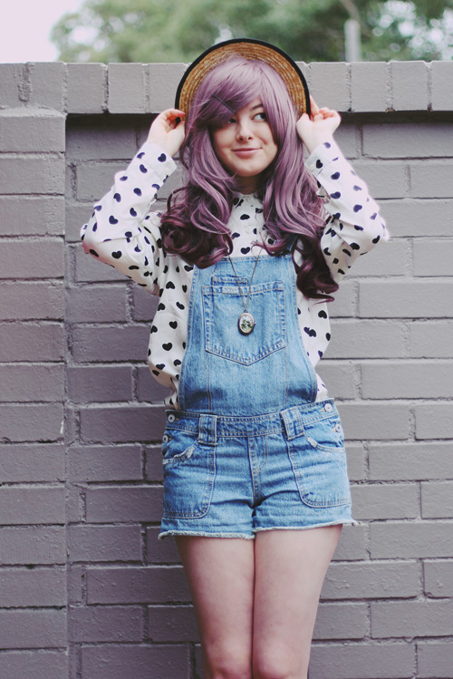 blouse - c/o EFoxCity wig - c/o Milanoo overalls - Thrifted in Japan (Wego) hat - c/o Wholesale necklace - Claire's (Japan)