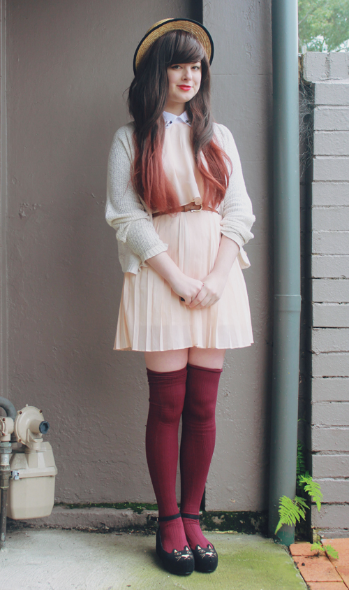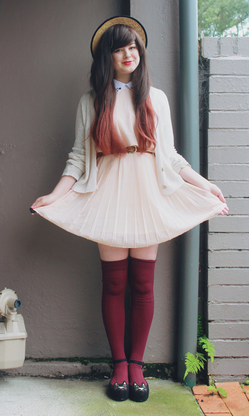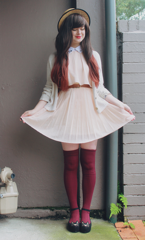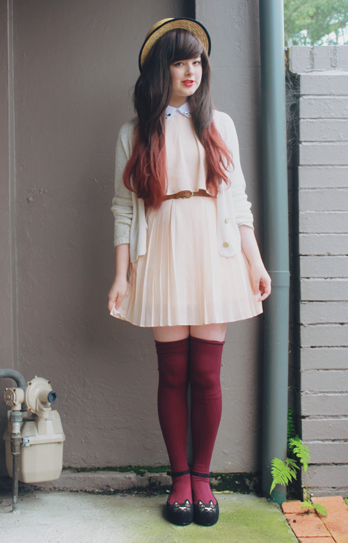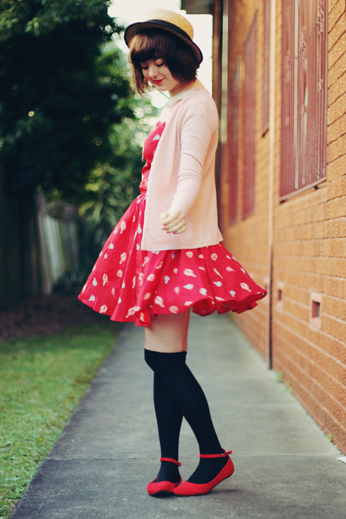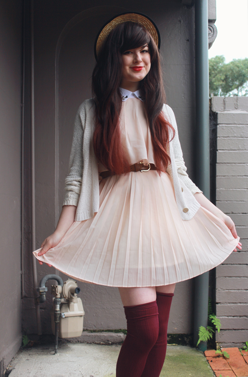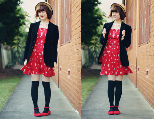 As a side note, Les Folles Marquises, according to google translate, is "The Crazy Canopies" in English - any French speakers want to tell me if that is at all correct? What a cute name for a cute store, though! And although you'll all know me as an advocate of cheap clothes, if something is handmade this well, it's definitely worth paying more for. I've been making some pretty great thrift-shop finds lately, like this pink cardigan and velvet fitted blazer. Every winter I only ever seem to have one cardigan and one coat which I end up wearing every day, which just makes winter even more depressing, so this year I am making an effort to own quite a few different coats, sweaters and cardigans so I can mix and match them (almost) as frequently as my dresses! Op-shops are definitely the best place to get coats and cardigans from, especially as they are usually under $10 - I don't think I've owned many "new" ones in quite a number of years. ![]()