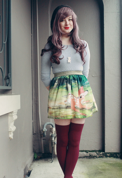Anyway, here is my outfit from the other day! I'm really loving stripey things right now, and thigh-high socks! (And I'll have a stripey shirt DIY up in a couple of days, ooh!) I've brought a few pairs of thigh-highs to Italy with me, too, but I don't know if I'll be able to wear them in the summer heat. It's going to be a shock going from winter (and constant rain) to the middle of a heatwave-summer. ![]()