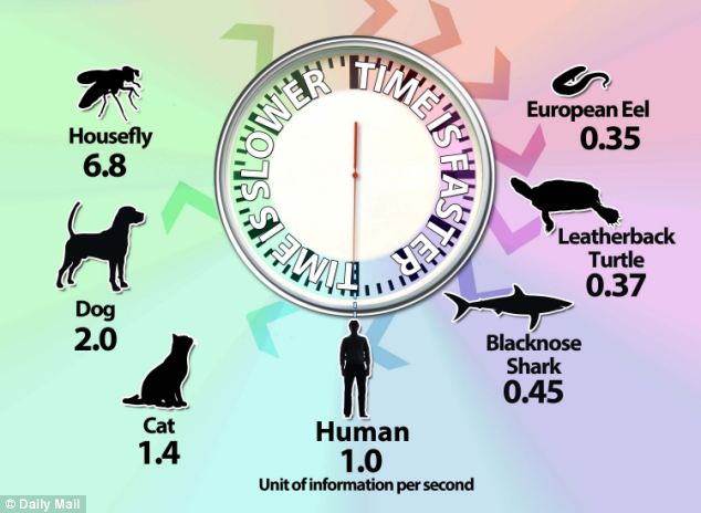 A science paper that came out in the last week has utterly fascinated me, and I needed to share it with you all. If you've been reading my blog for a while, you will know that I am also fascinated by perception and have talked in depth about colour perception in particular. Your perception can be totally different both to another person's, and to other animal's perception of the world. But I've usually only focused on visual perception. Today, I'm going to talk about time perception. You've probably been in this situation before - endlessly trying to swat at a mosquito or a fly, but it always moves away too quickly for your hand to reach it. Well, a new study shows that small creatures probably perceive time as much slower than we do. That noisy flying insect starts seeing your hand moving slooooowly towards it, yawns, has a scratch, then leisurely moves out of the way. For that insect, you might as well be moving though honey.