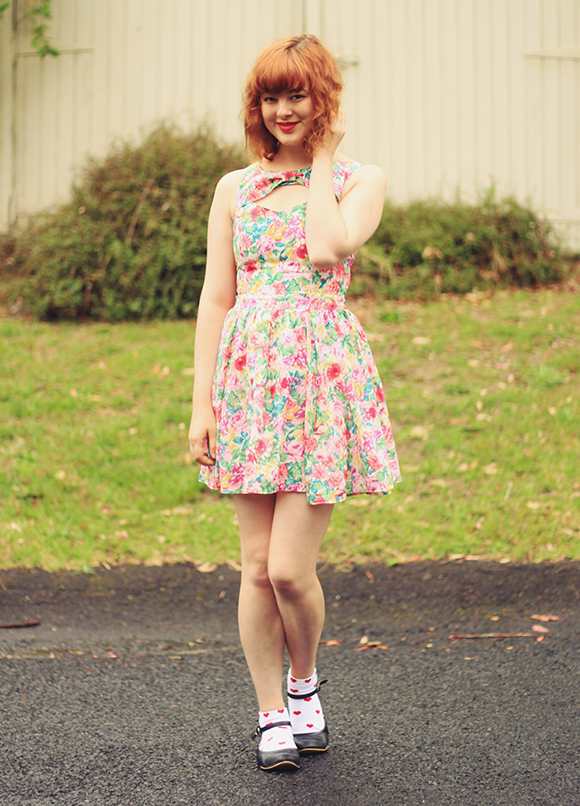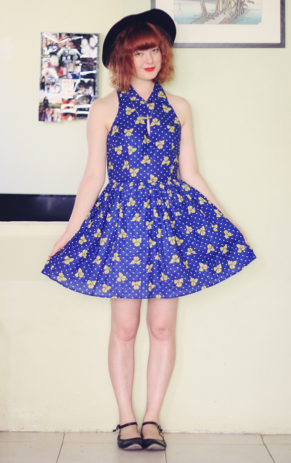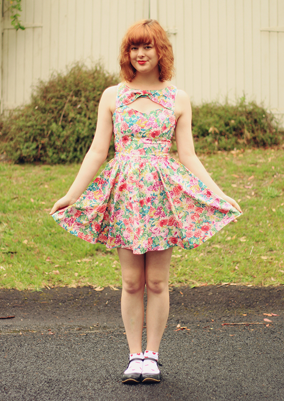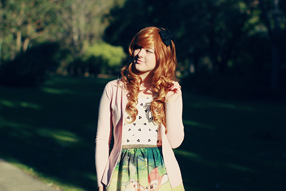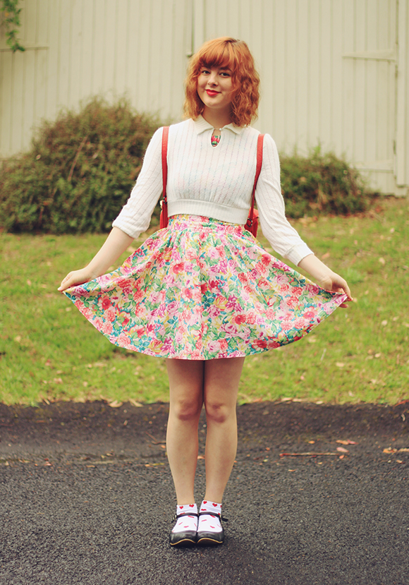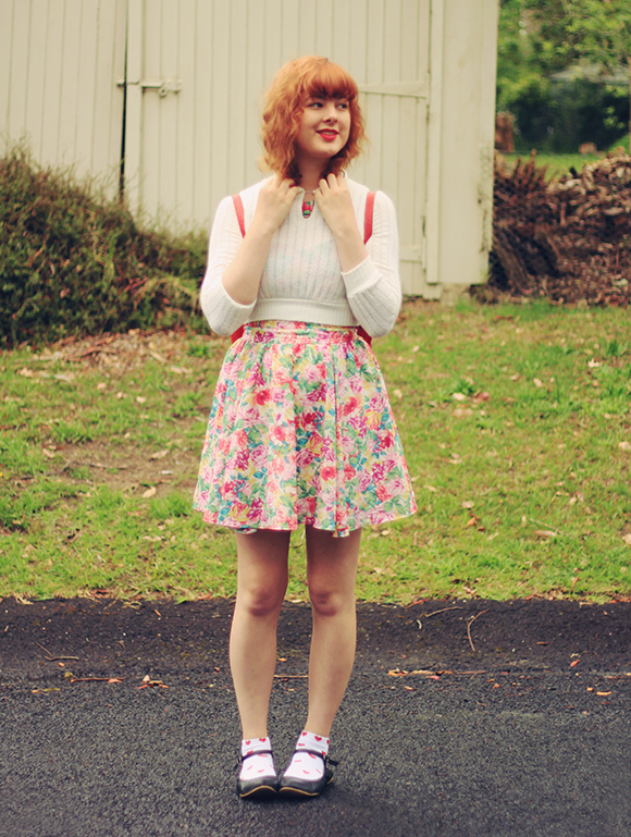 When I moved out of home, I left about two-thirds of my clothes at my parent's house. Whenever I go back to visit, I also get to rediscover all these old clothes! Going through my old wardrobe is like visiting my own personal (free) thrift shop, and lets me refresh my wardrobe every few months without having a buy a thing. This cropped sweater is a gem that I've had for years, originally thrifted. And I just got this dress for a couple of dollars at an op-shop the other day, too! I'm really enjoying getting into thrifting again, though it's helped that I've been finding the most awesome stuff lately.