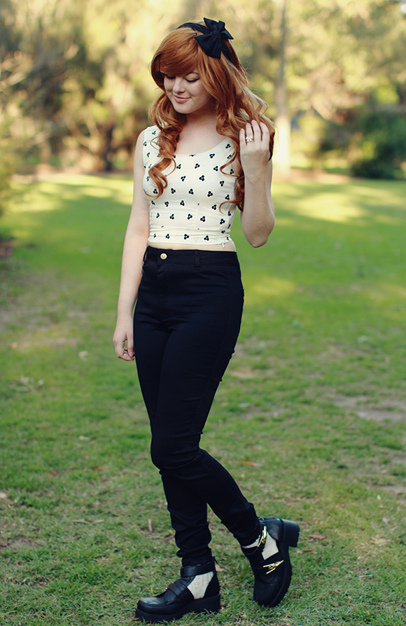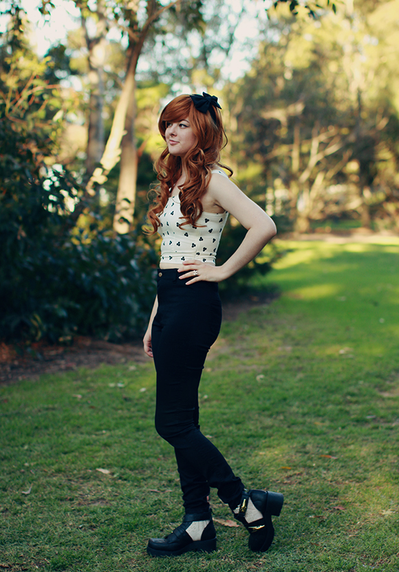 It's a rarity to see me wearing pants of any kind on my blog! These photos were actually taken last August when Ashley Dy came to visit. I still love this combination, though, and this outfit is actually more practical then it was at the time we took these photos - it's actually almost summer now - proper crop top weather, instead of the middle of winter!