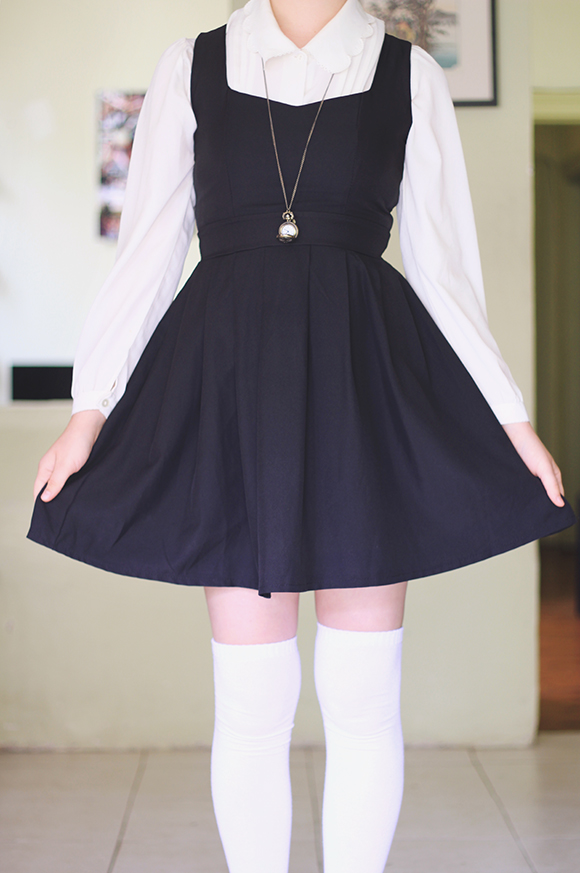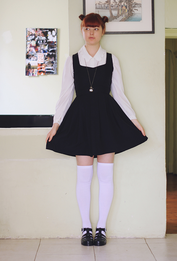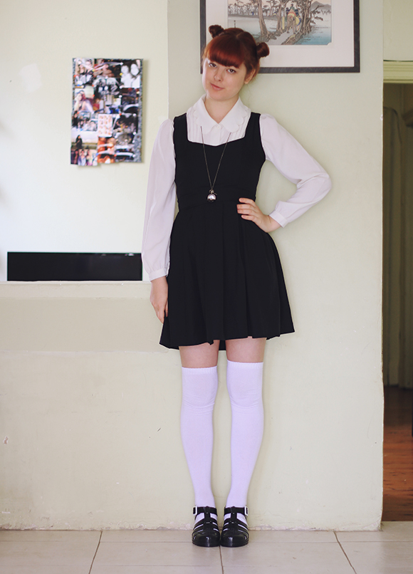 dress - c/o Romwe (way back) | socks - Clear It | blouse - thrifted | shoes - JuJu Shoes
