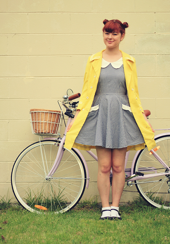 With this bike, I successfully obtained Hipster level 9000 (I subtracted 1000 points due to my lack of square black-framed glasses - with them I would obtain the status of Ultimate Hipster. Too bad). I've been riding this beautiful thing around everywhere since I got it on Thursday, as you can probably see from the many bruises now adorning my legs (I bruise extraordinarily easily and am also pretty clumsy - not the best combination for bike riding, but I don't care!) On the weekend, I rode to some fantastic second-hand markets where I also picked up this coat: