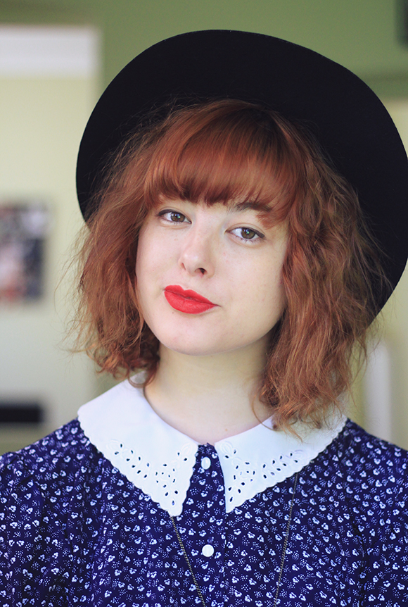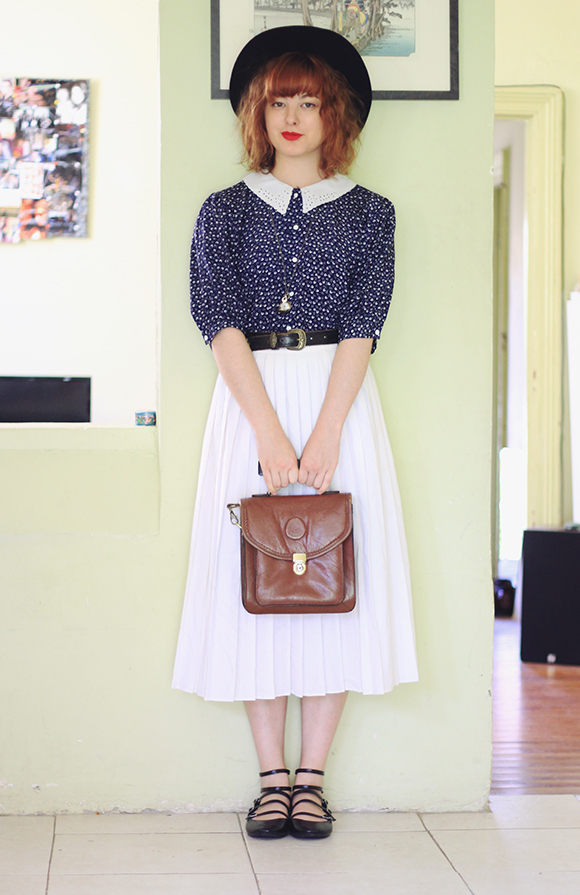 Blouse is thrifted | skirt is thrifted | hat is thrifted | belt is thrifted | bag is thrifted | shoes are from Asos | lipstick is MAC (Ruby Woo)