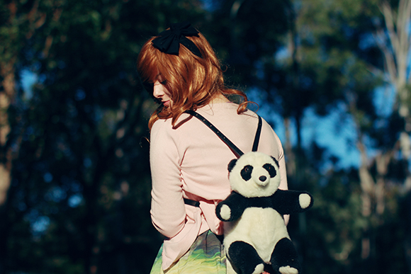 I can't remember if I have ever posted my DIY panda backpack on this blog before! But anyway, here it is. I was kind of distraught about having to cut his brains open to make him into a bag, but I sewed him up real good and now he can fit a phone and a wallet!