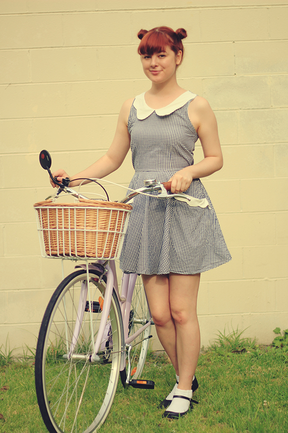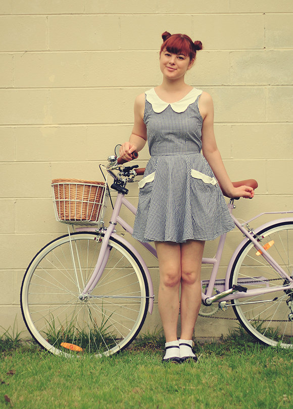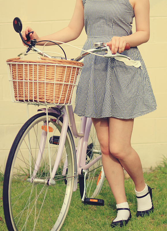 dress - Bonne Chance Collections | shoes - c/o Yeswalker | bike - Reid Cycles