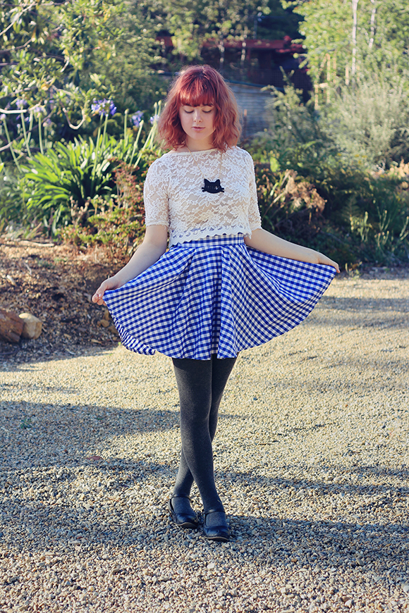 ReplyDeleteThat gingham skirt is very Dorothy Gale, but you pull it off!