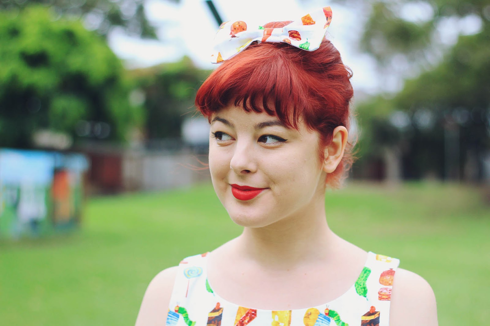Dress is DIY | bow is DIY | tights from Daiso | shoes are Naot Kedma's | lipstick is MAC (Ruby Woo)