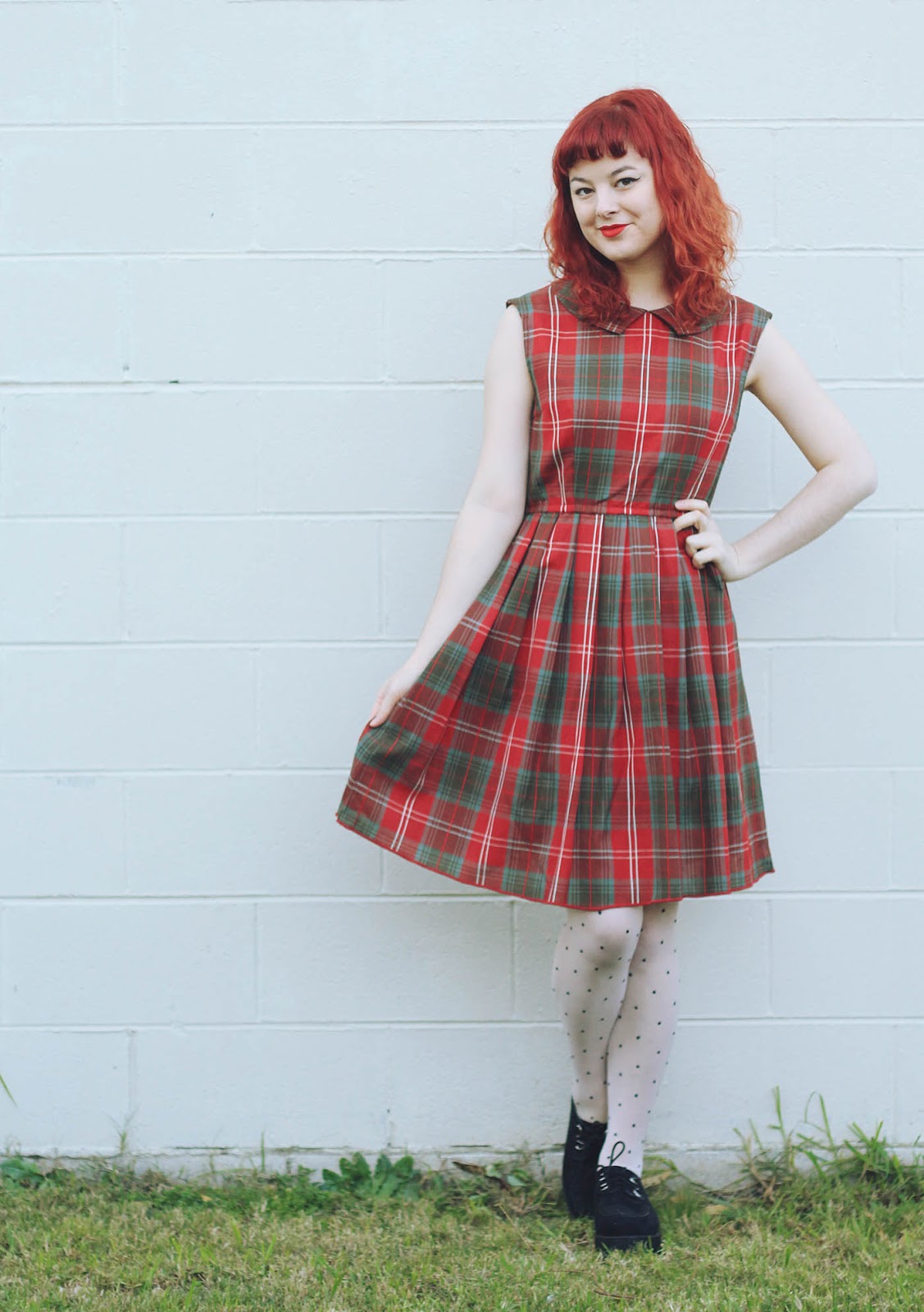 I'm happy you got that dress because it looks perfect on you! Such an adorable piece! I absolutely love the polka dot tights paired with it. I'm definitely going to need to try pairing polka dots with plaid asap.