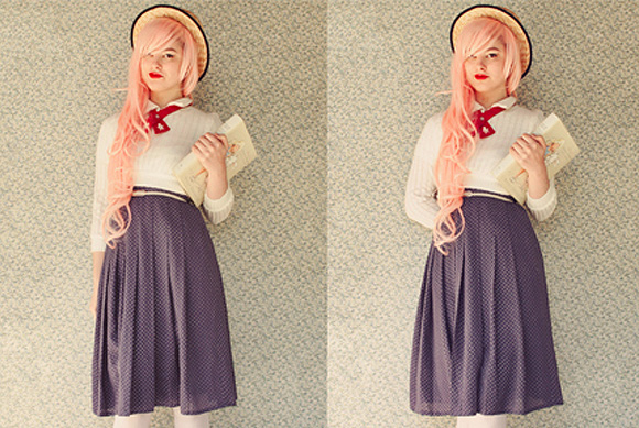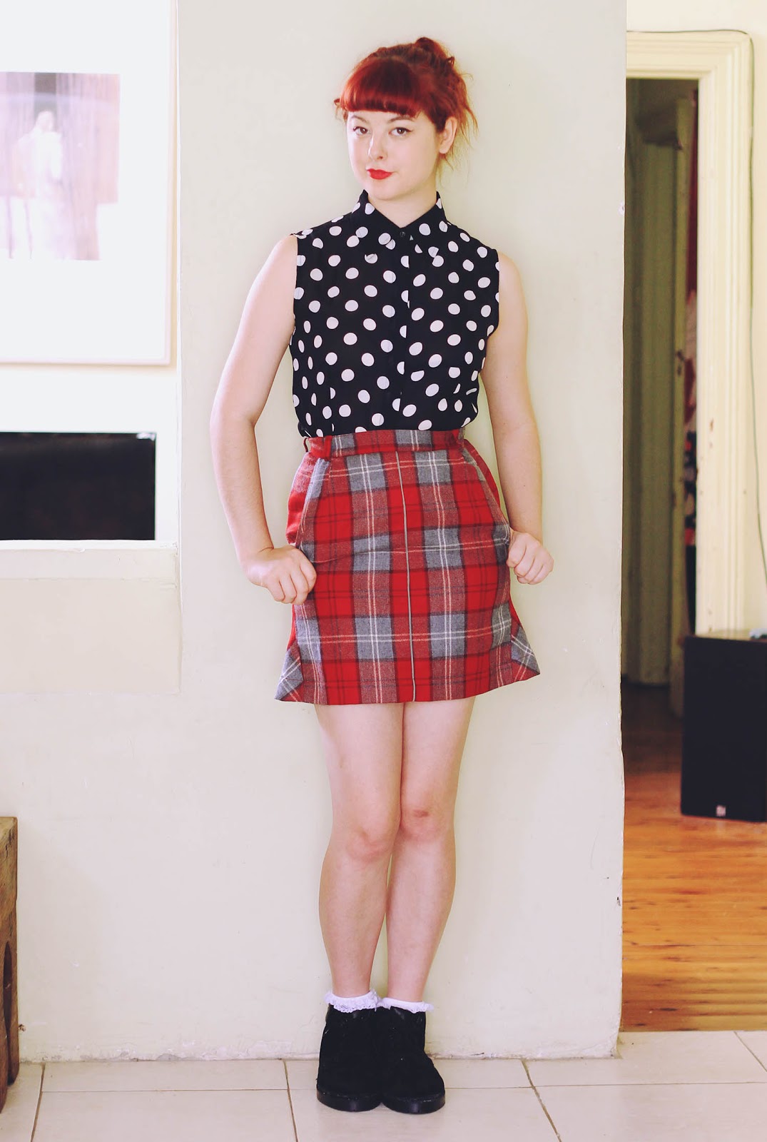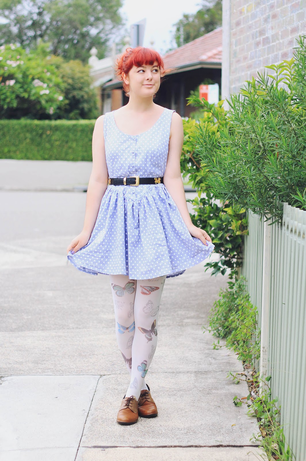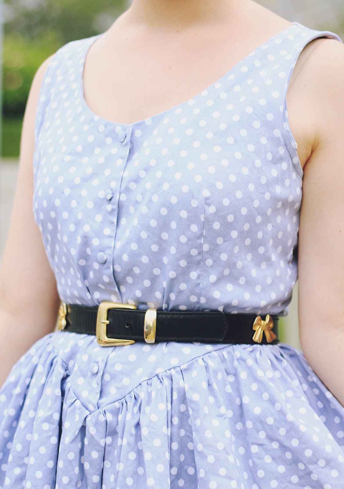This polka dot dress and the bow-belt are some more awesome thrifted finds that altogether cost me $3. I've been having the best run in thrift stores and markets stalls lately! The other day, I even got myself an incredible Black Milk swimsuit for $15!! (I almost hyperventilated when the girl told me the price, and basically ripped it out of her hands). Black Milk swimsuits are usually $100, so you can imagine that I was pretty pleased with myself. But now that I know my size... it's really difficult not to go to the actual Black Milk site and blow all my savings (especially the Adventure Time ones)! Perhaps I will ask for one for my birthday, which is coming up very soon... :) I love you guys!