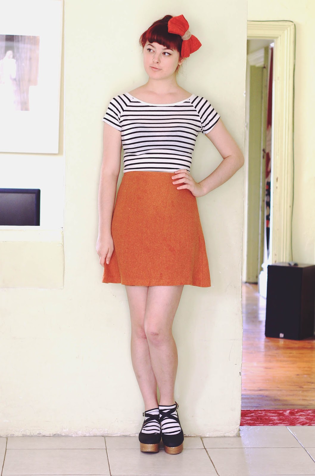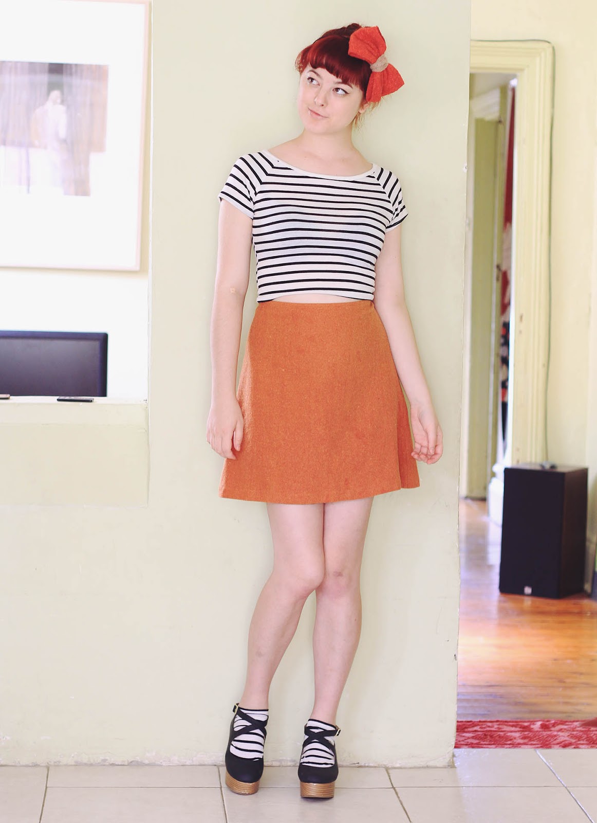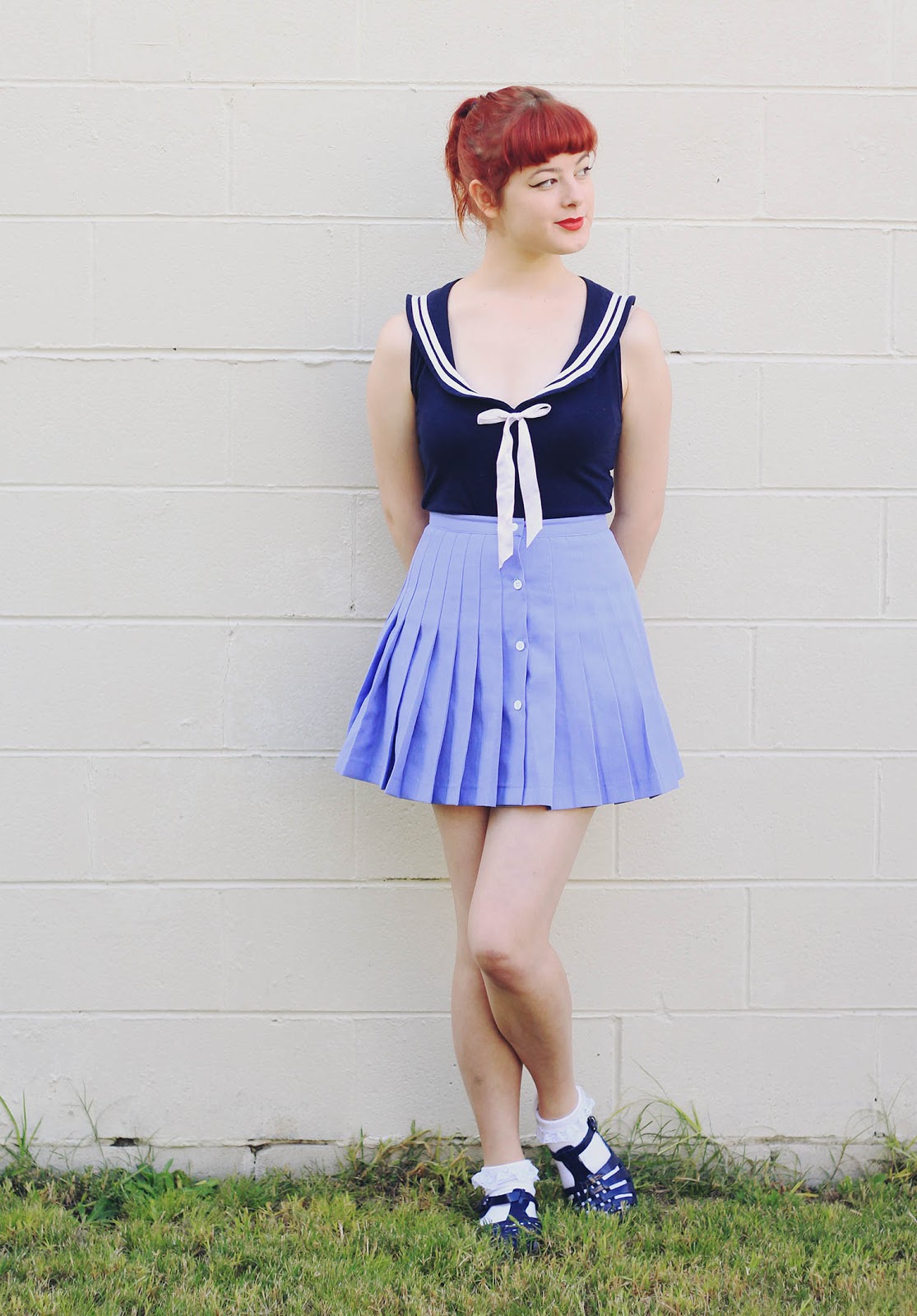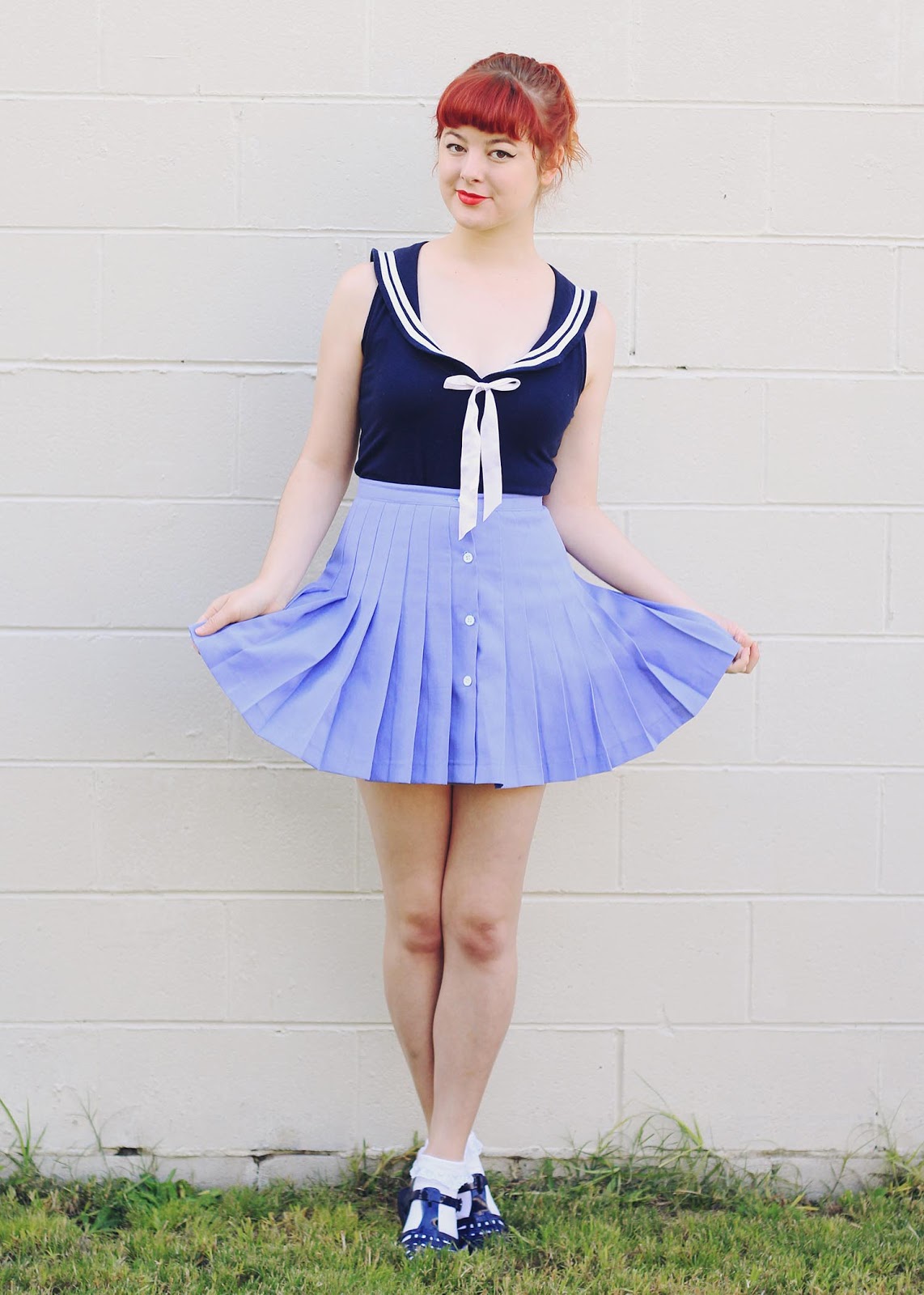 Shirt is thrifted + DIY | socks are DIY | skirt and headband are thrifted | shoes are from Japan