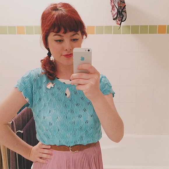 I got this adorable keyhole sweater from a vintage fair that I went to the other day (and I also entered in a vintage-style competition at the fair, which was the first time I've ever done something like that!!) The unicorn pin is from Ginger Pickle. I've also never done my hair like this before, but I really liked it!