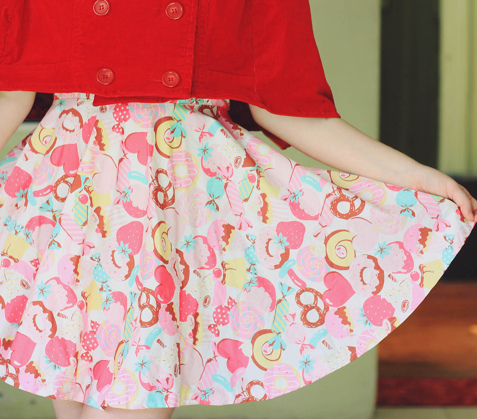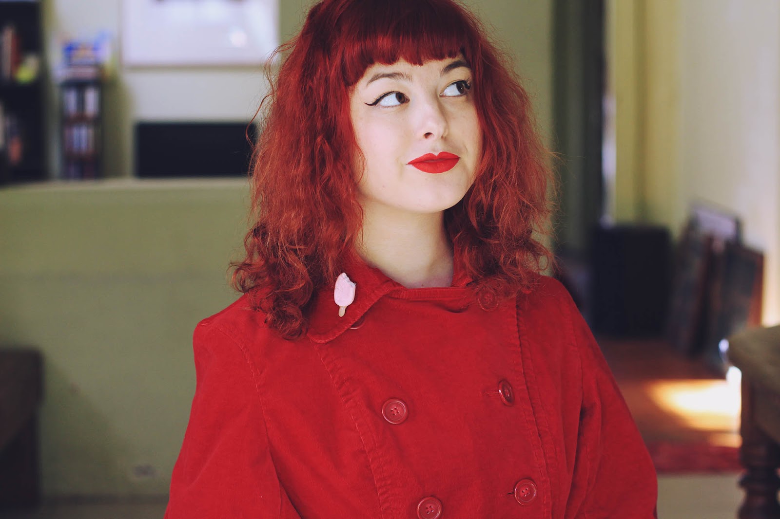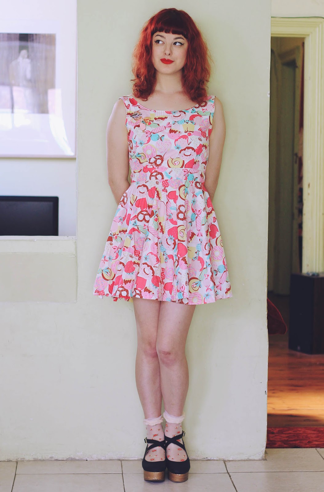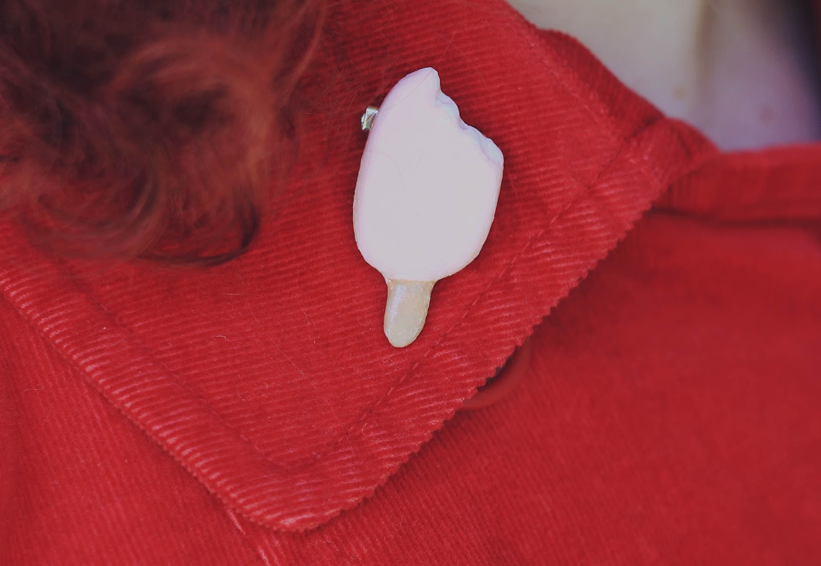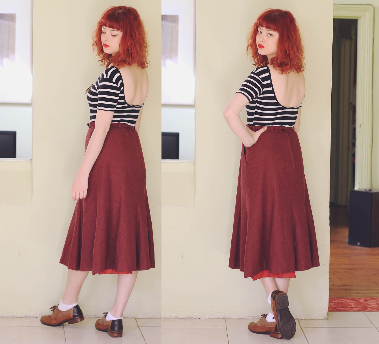 Lately I've found a number of wonderful woolen vintage skirts at the op shop, and it's made me realise that sizes were a lot smaller in the past - although I'm usually a size 8 or 10, when it comes to vintage skirts I'm always a size 12-14! To match my vintage outfit, I also wore this handmade brooch based on a vintage sewing pattern sent to me by Ladybird Likes - isn't it gorgeous?