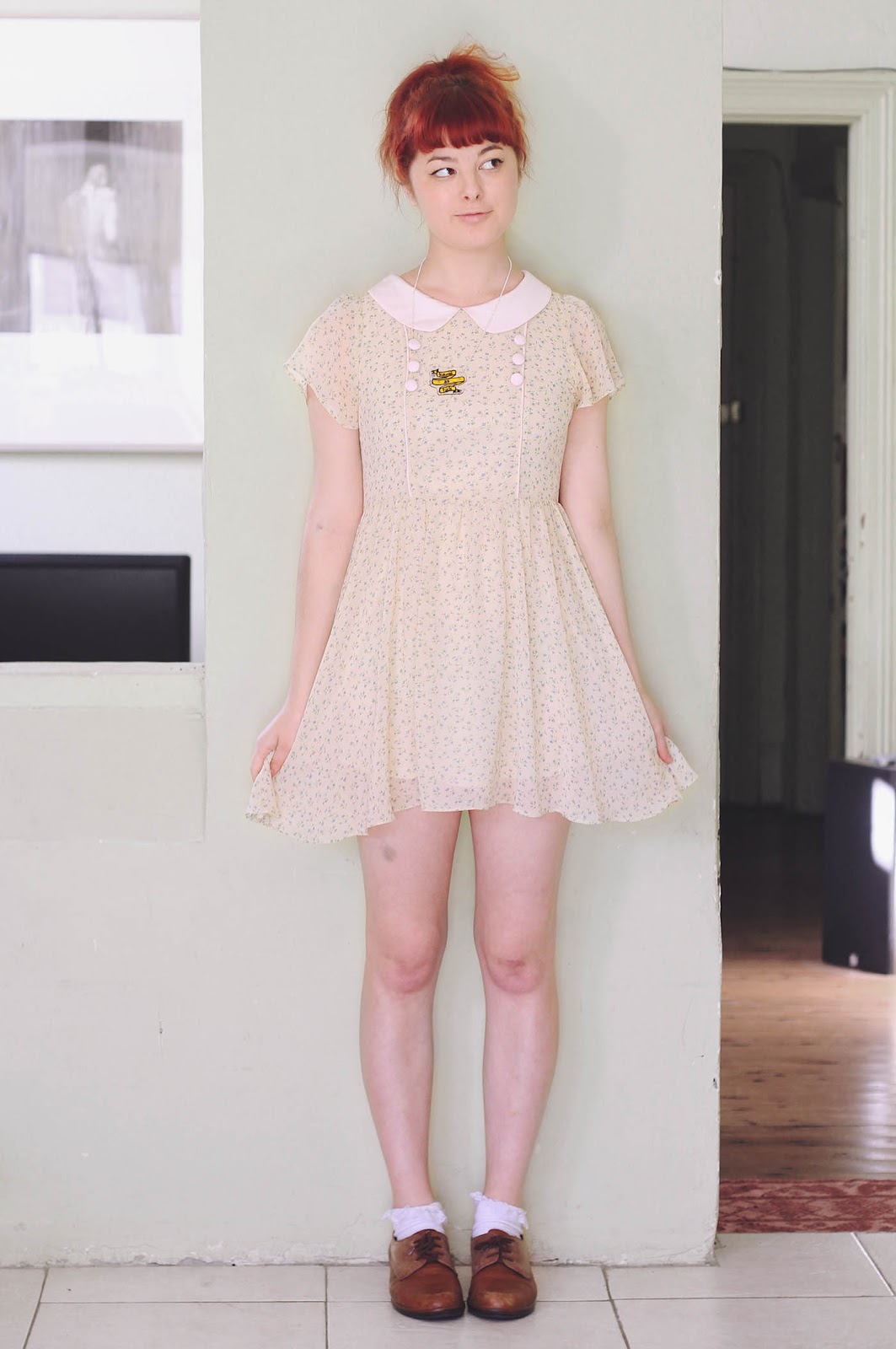Crop top - DIY | pinafore - thrifted | socks - Dangerfield | shoes - Naot | brooch - DIY