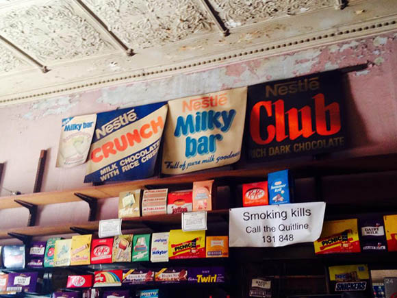 The second clue got us to visit a mysterious milkbar in the inner-west, the centre of many an urban-legend. This milkbar is run by an extremely old dude who people affectionately call "Dr Death". Olympia milkbar is notorious for not having changed since the 1960s (all the old chocolate boxes - now empty - and posters still remain), including the prices (apparently you can get a milkshake for $2.20) and for never having the lights on inside, not even at night.
