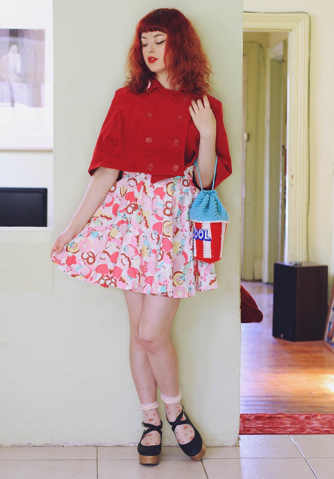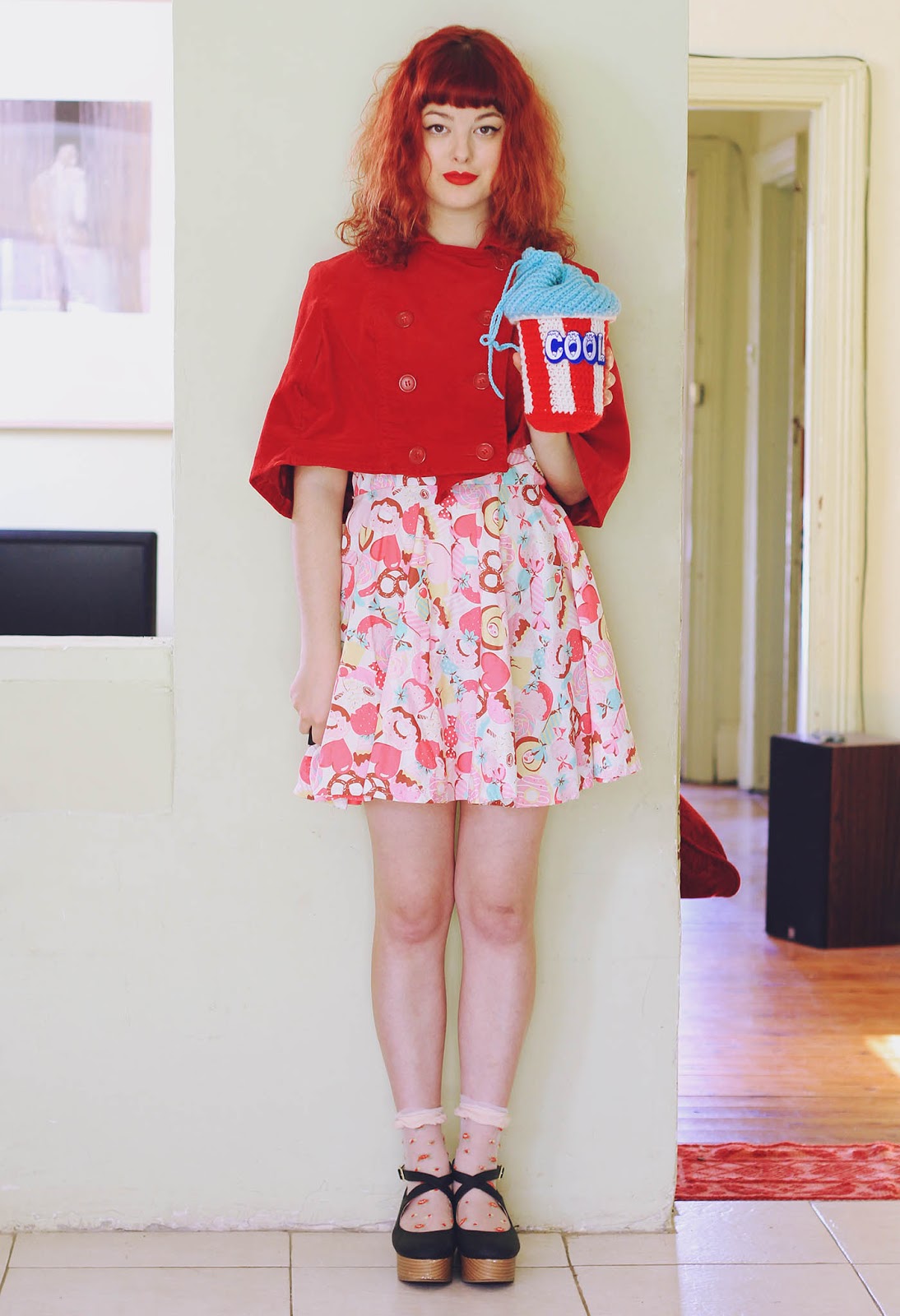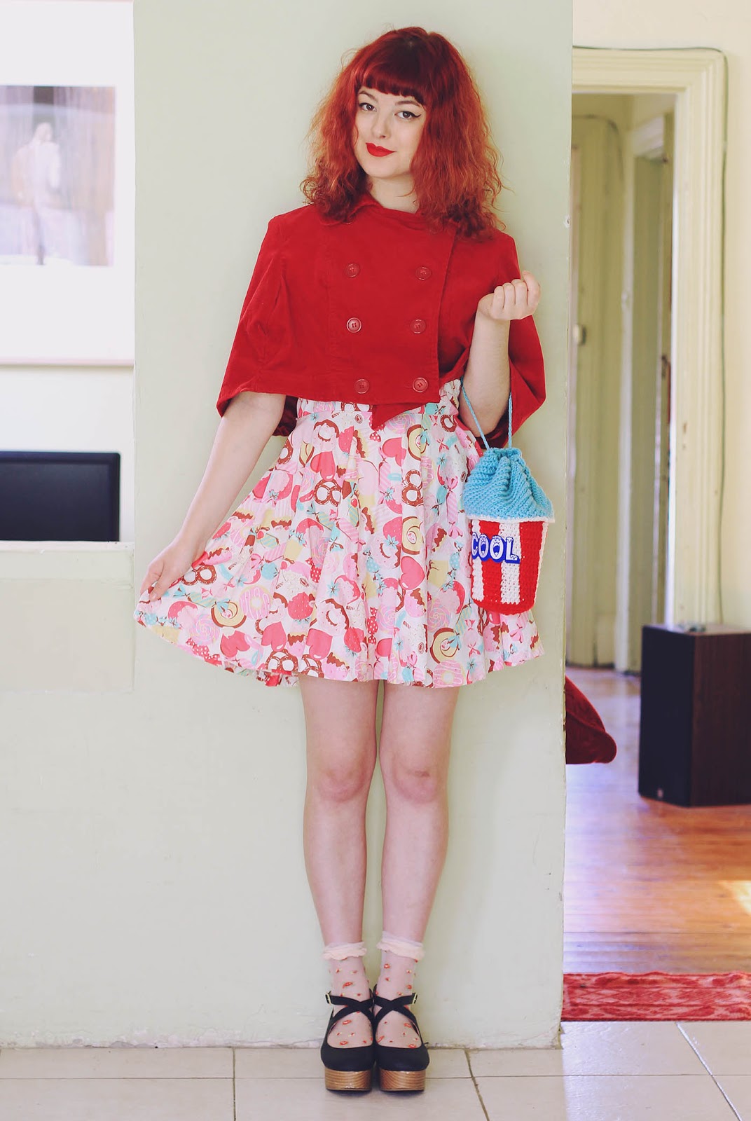 Dress is DIY | cape is DIY | shoes and socks are from Japan | bag from Twinkie Chan | brooch is DIY