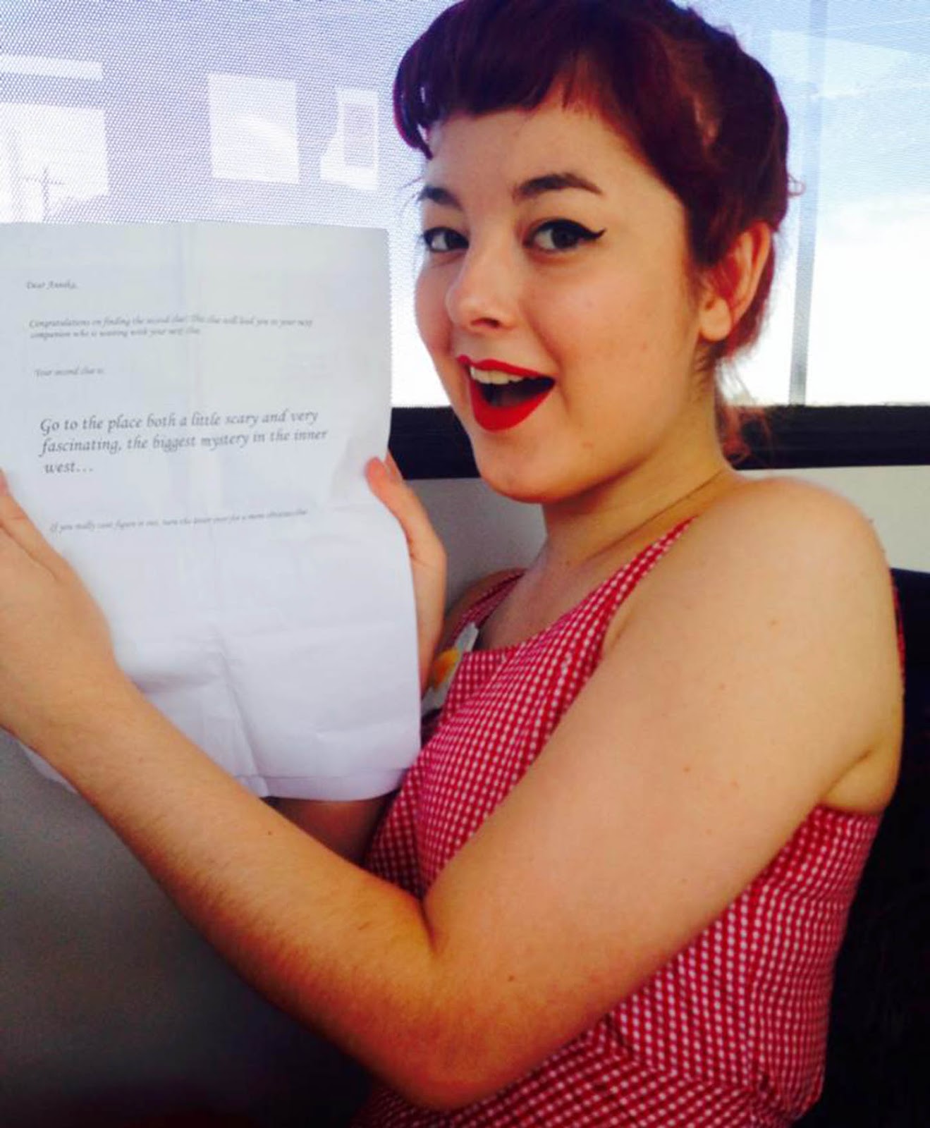 had forgotten that it was my birthday... for about 1 minute. Katie told me that I should probably go and talk to the owner of the op-shop, but didn't tell me why! The owner ended up coming over to me, and asked, "Are you Anni?", then she handed me my next clue! (We're up to clue number #2 for those of you playing at home!)