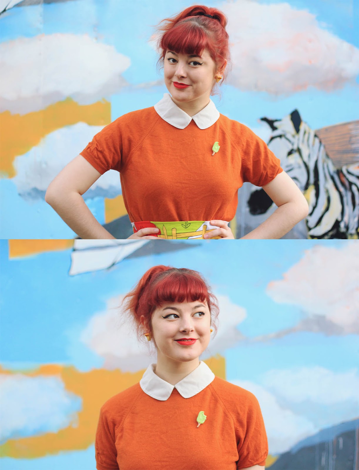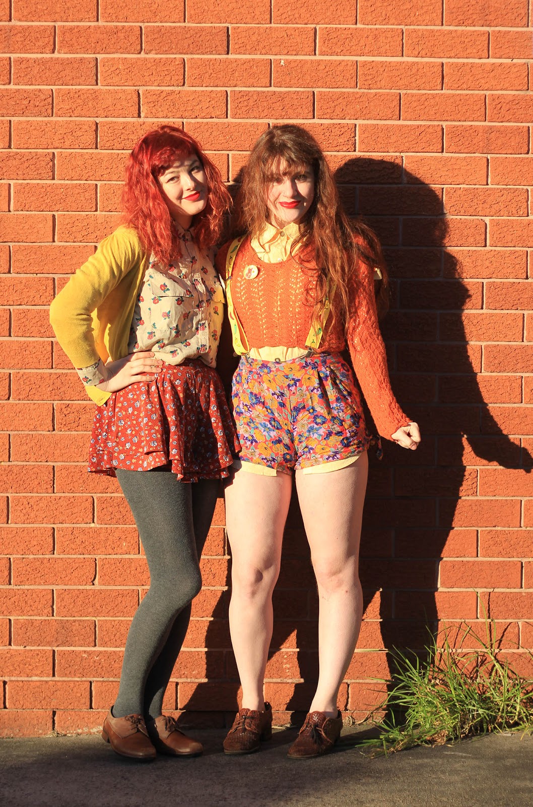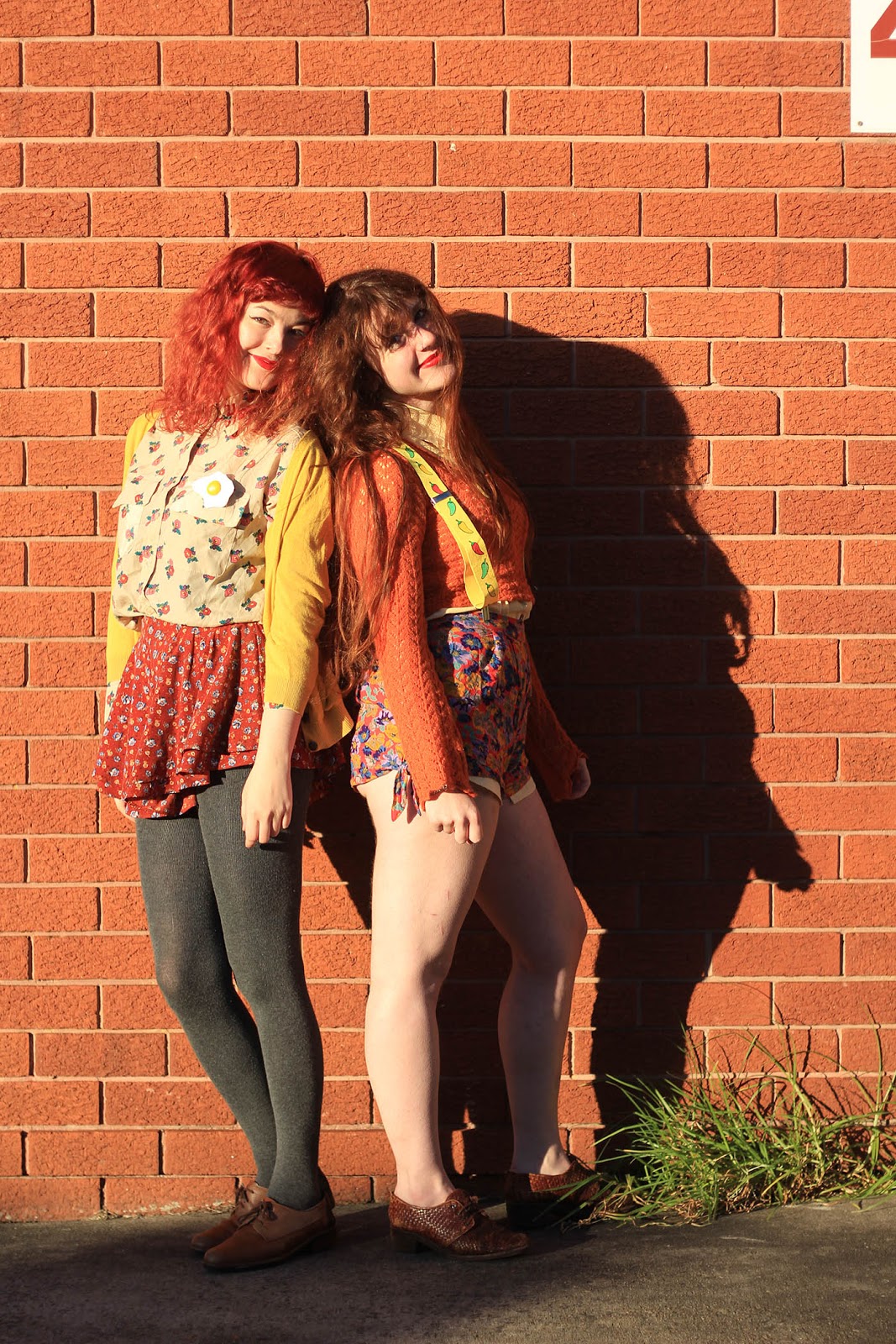 So we spent all of yesterday hanging out and taking photos, our outfits becoming progressively more ridiculous as the day went on. I styled both of our outfits here - for some reason I was feeling Autumnal even though it isn't Autumn anywhere in the world right now. Autumn and... eggs. Because eggs are awesome. Yep.