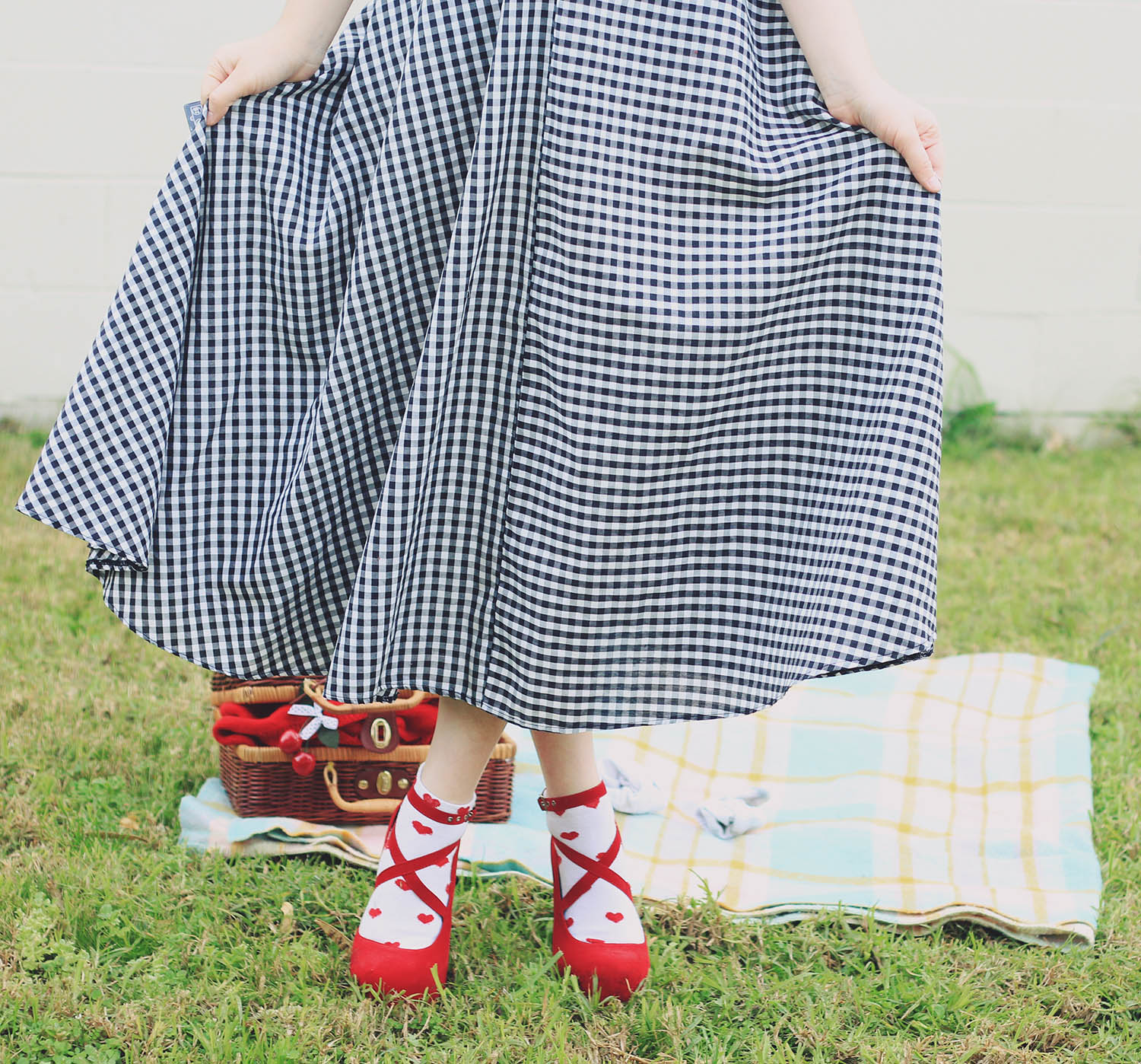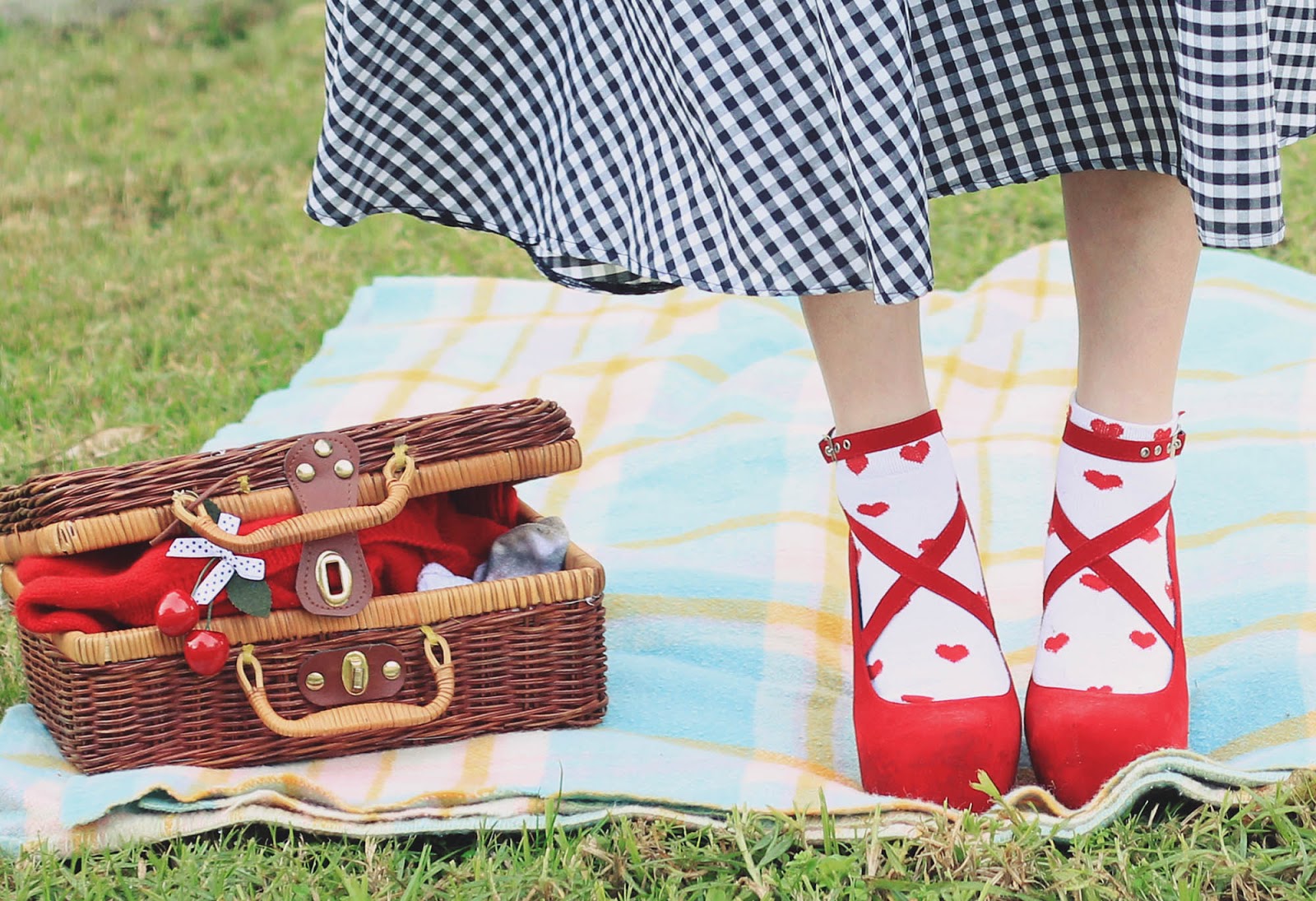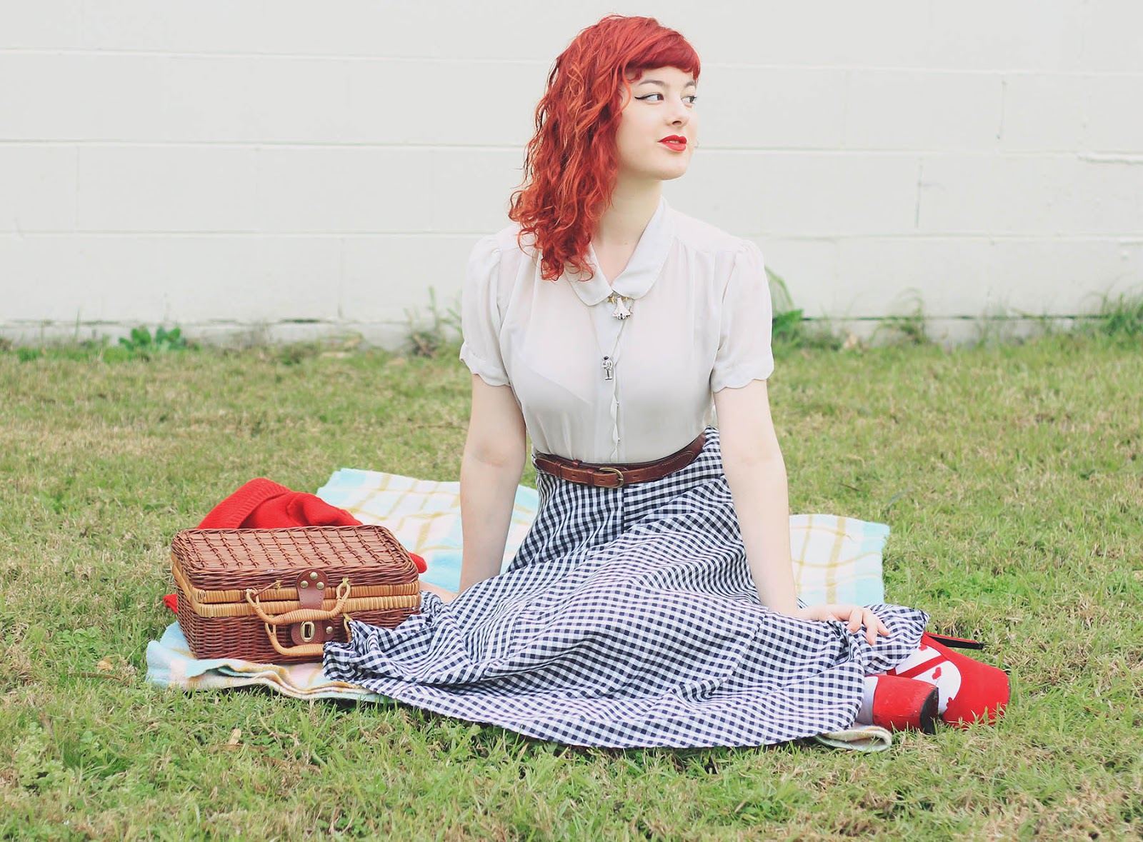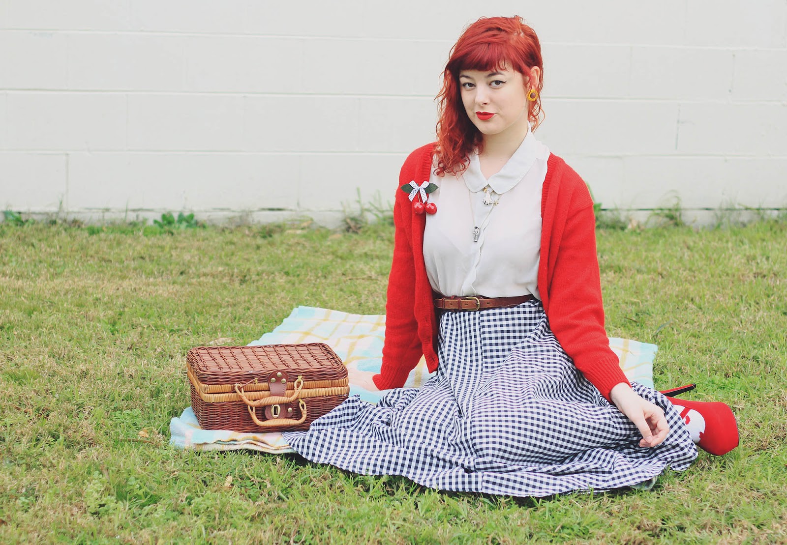 Blouse, skirt, cardigan and basket are thrifted | space shuttle necklace c/o Eclectic Eccentricity | astronaut necklace c/o Ginger Pickle | shoes were c/o Sammy Dress (years old) | socks from markets | cherries c/o Sarsparilly (actually a hairclip) | earrings are handmade by me