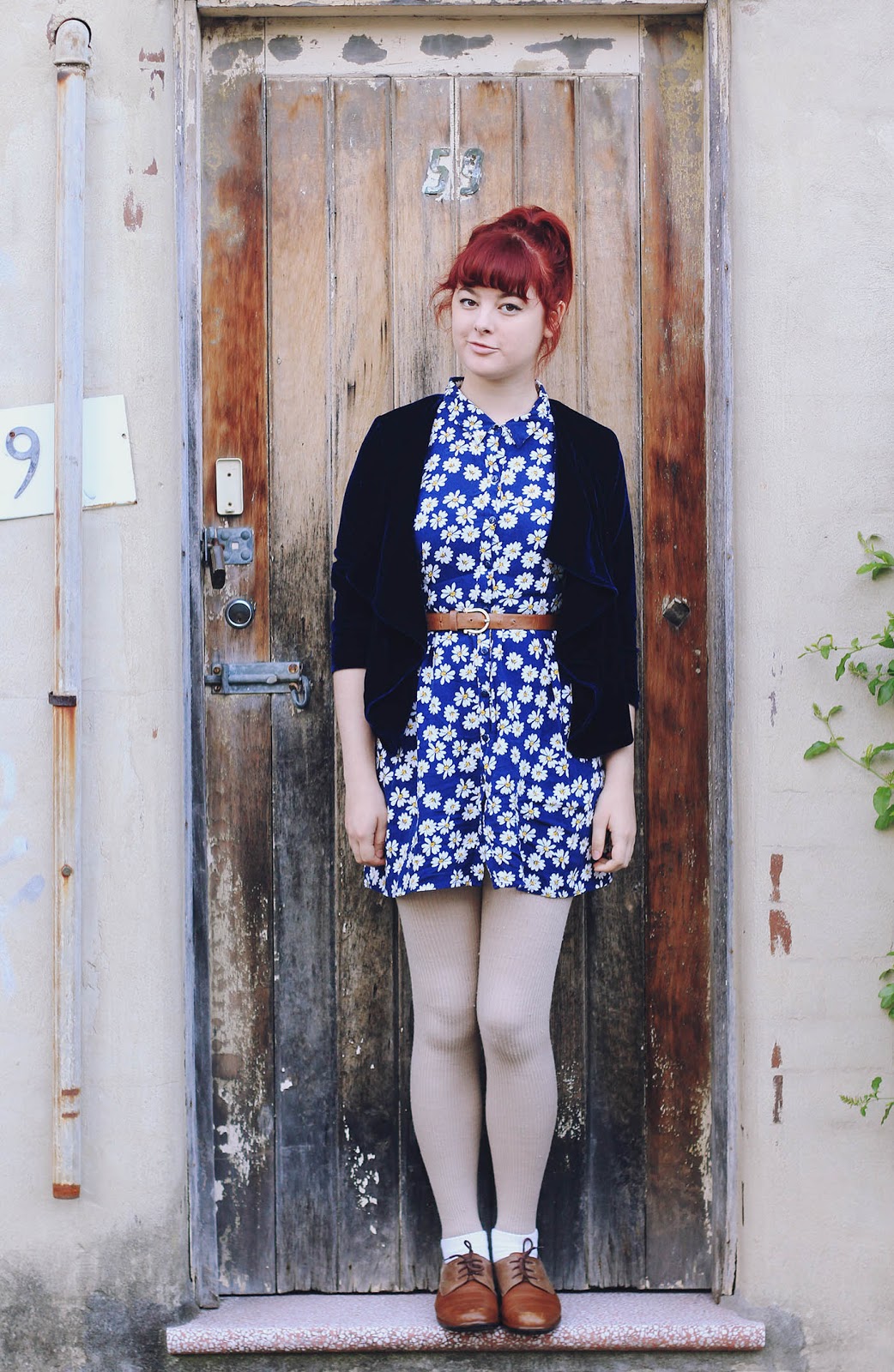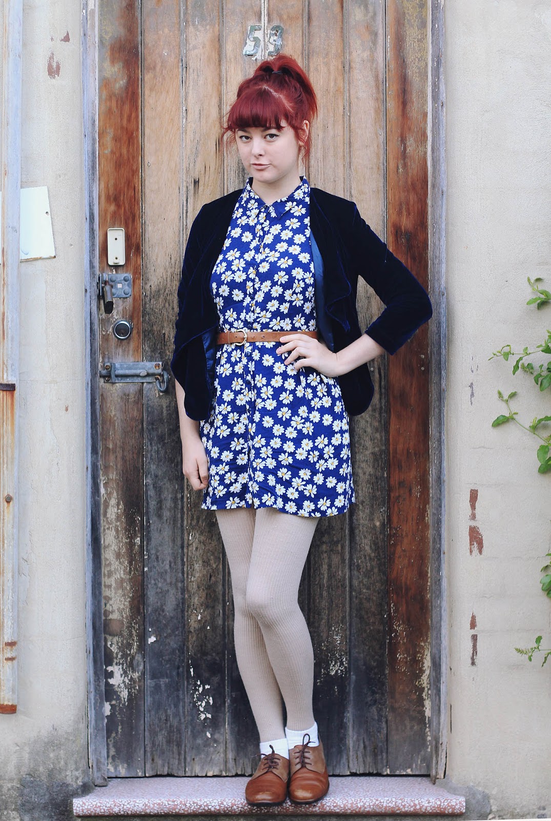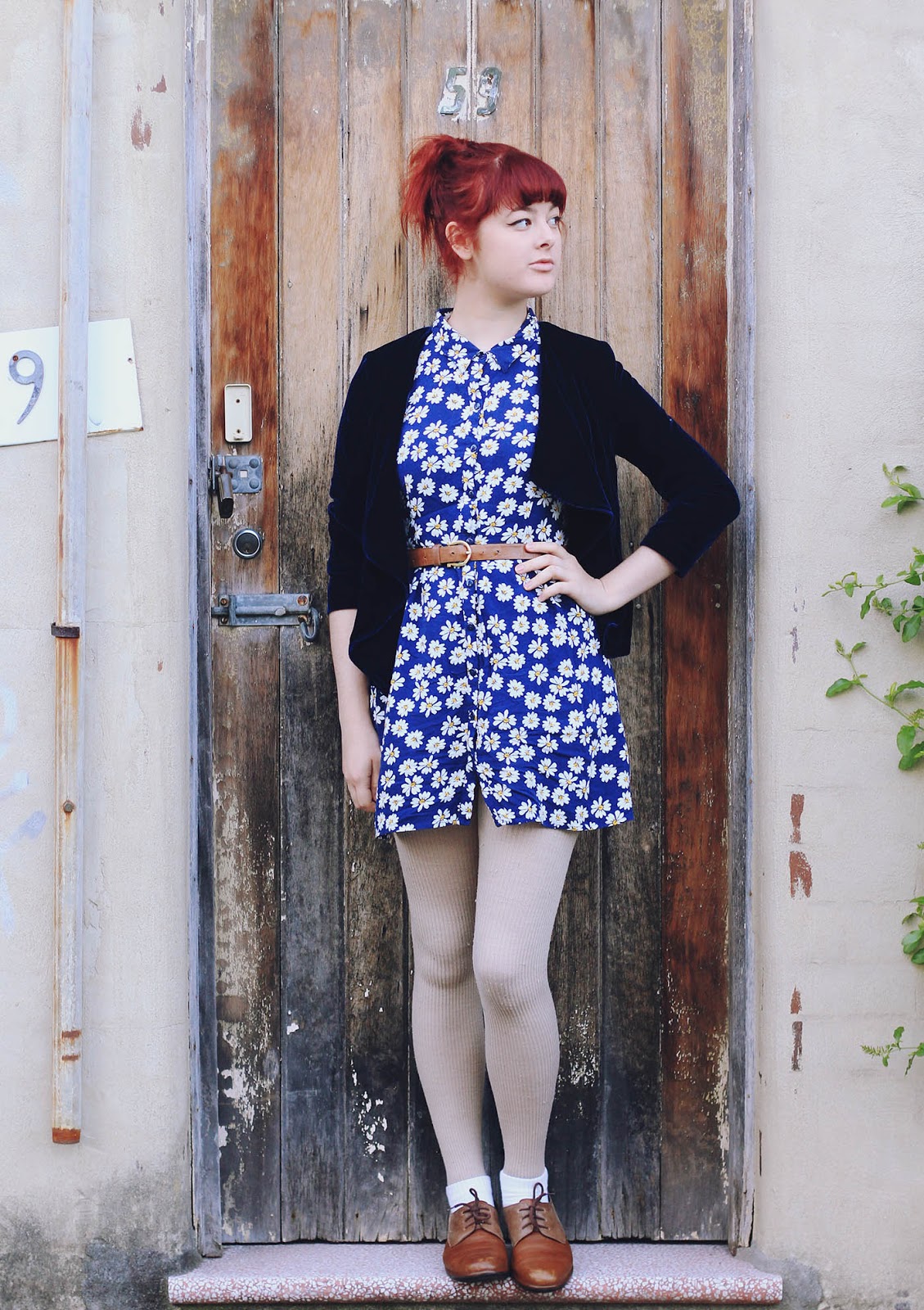 Some of my latest thrifting successes - this daisy-print shirt dress and velvet cardigan (which is actually Alice in the Eve, a trendy and expensive Australian brand), that altogether cost me $4. If I were not to wear shoes, the entire outfit would be under $10 - unfortunately, these Naot shoes push that total outfit cost up a whole order of magnitude!
