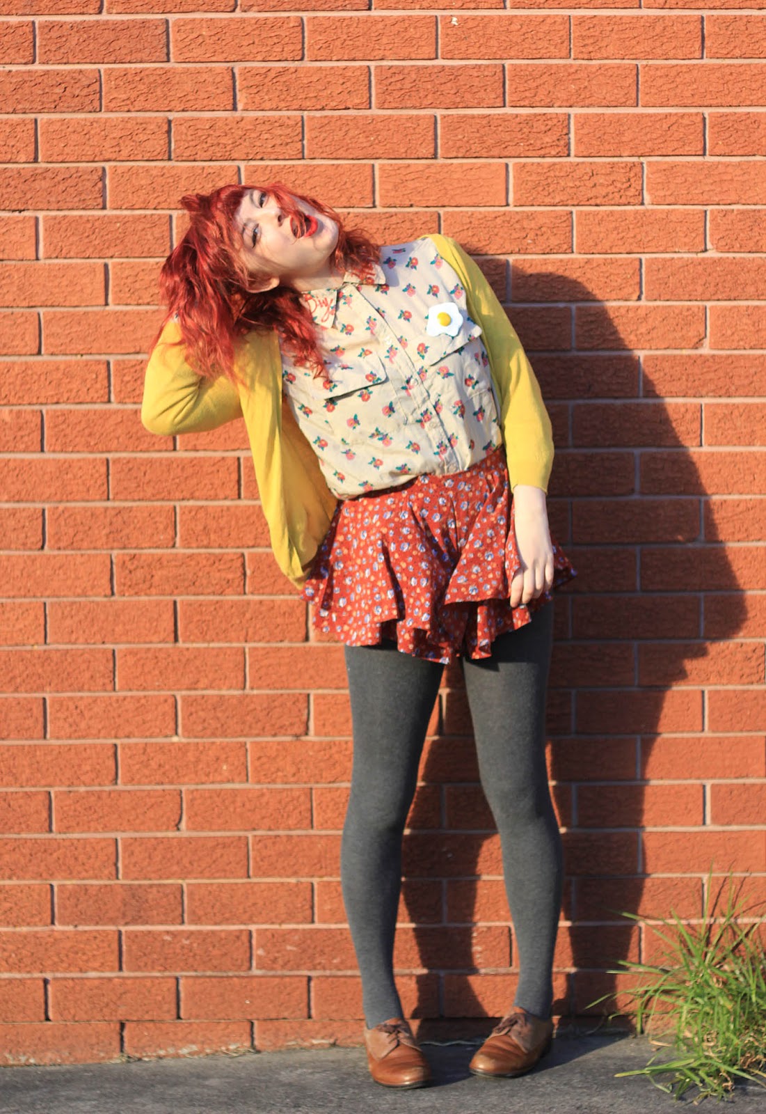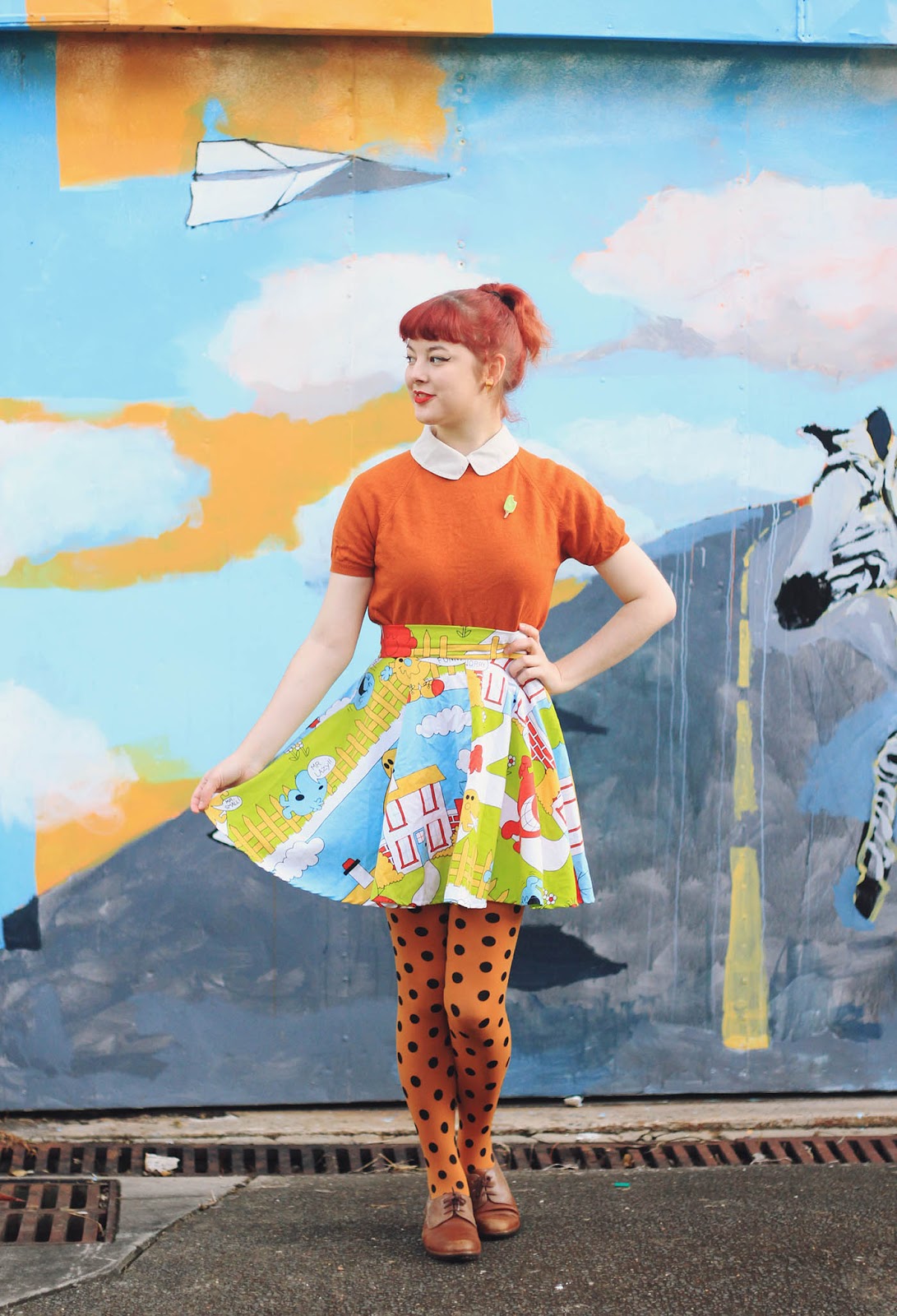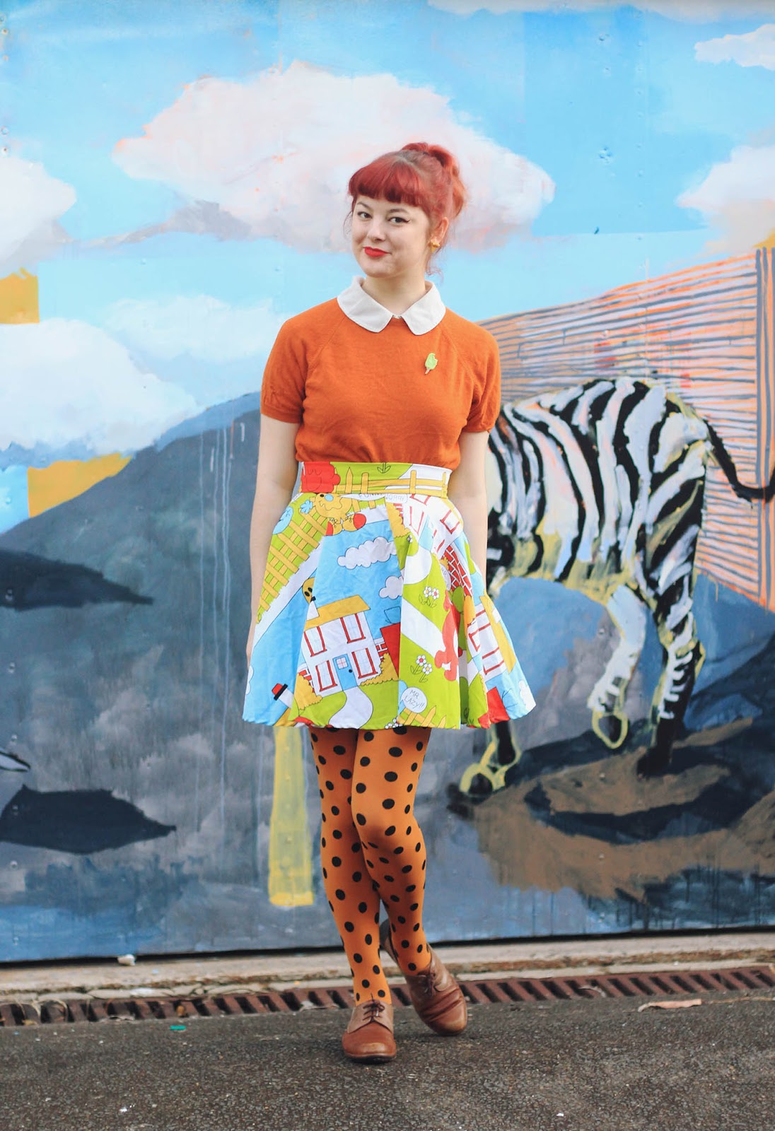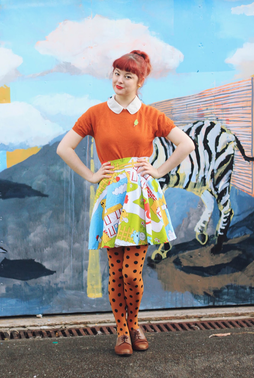 Skirt is DIY | blouse and jumper are thrifted | brooch is by Katie | tights from OKOK | Shoes are Naot | earrings are handmade from the Finders Keepers markets in Sydney