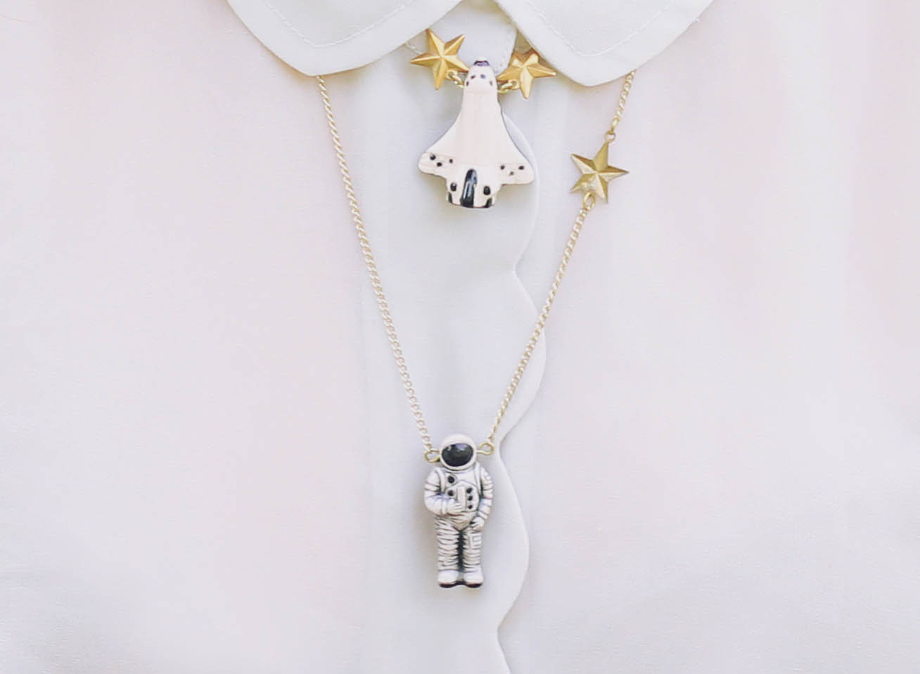 So when I visited Eclectic Eccentricity for the first time, I was fairly sure that I had made their store up in my head - because they are all of these things. And then! - I found out that they wanted to work. with. me. And send me all the cute stuff. Eeeep! Yep, I thought, I have definitely dreamt this all up. So can you all please do me a favour - visit their website, and tell me if they really do exist? It still seems a little too good to be true! The two space-themed necklaces that I'm wearing are pieces from Eclectic Eccentricity, though I actually got the astronaut necklace from Ginger Pickle a few months ago. I always wear the two necklaces together so I can pretend that the astronaut is Sandra Bullock, and the intense scenes from Gravity are playing out on my chest. Yeah. I have way too much fun with my clothes. So this seems appropriate considering my outfit - did you know that you can live-stream the Earth from space, from a camera mounted on the international space station (ISS)? The ISS is a station (in space, as you may have guessed) where astronauts go to hang out, 410 kilometres above our heads, in orbit around the Earth. While there, the astronauts are usually involved in different biology, physics and chemistry experiments and observations.