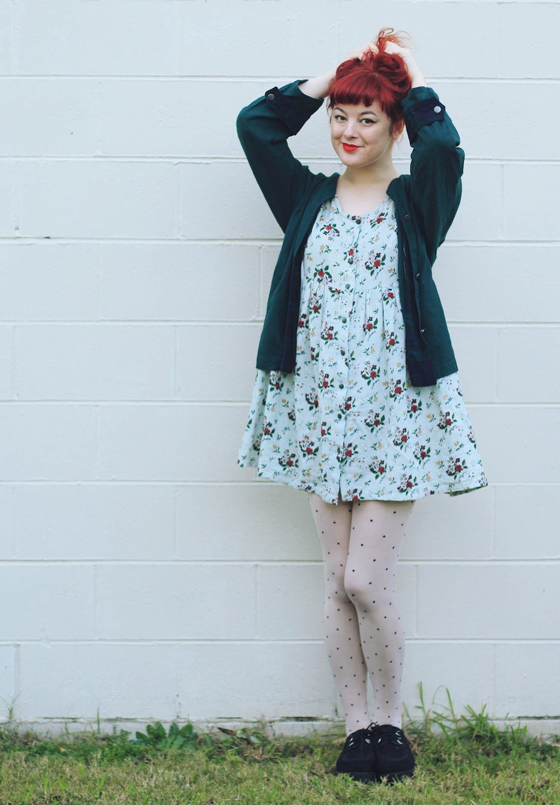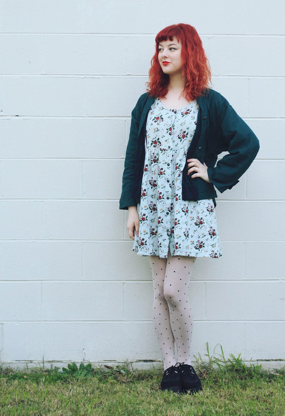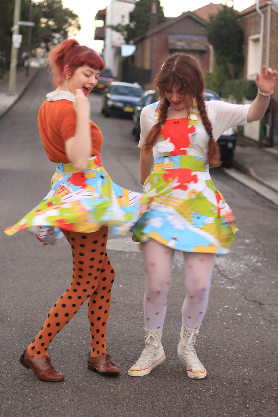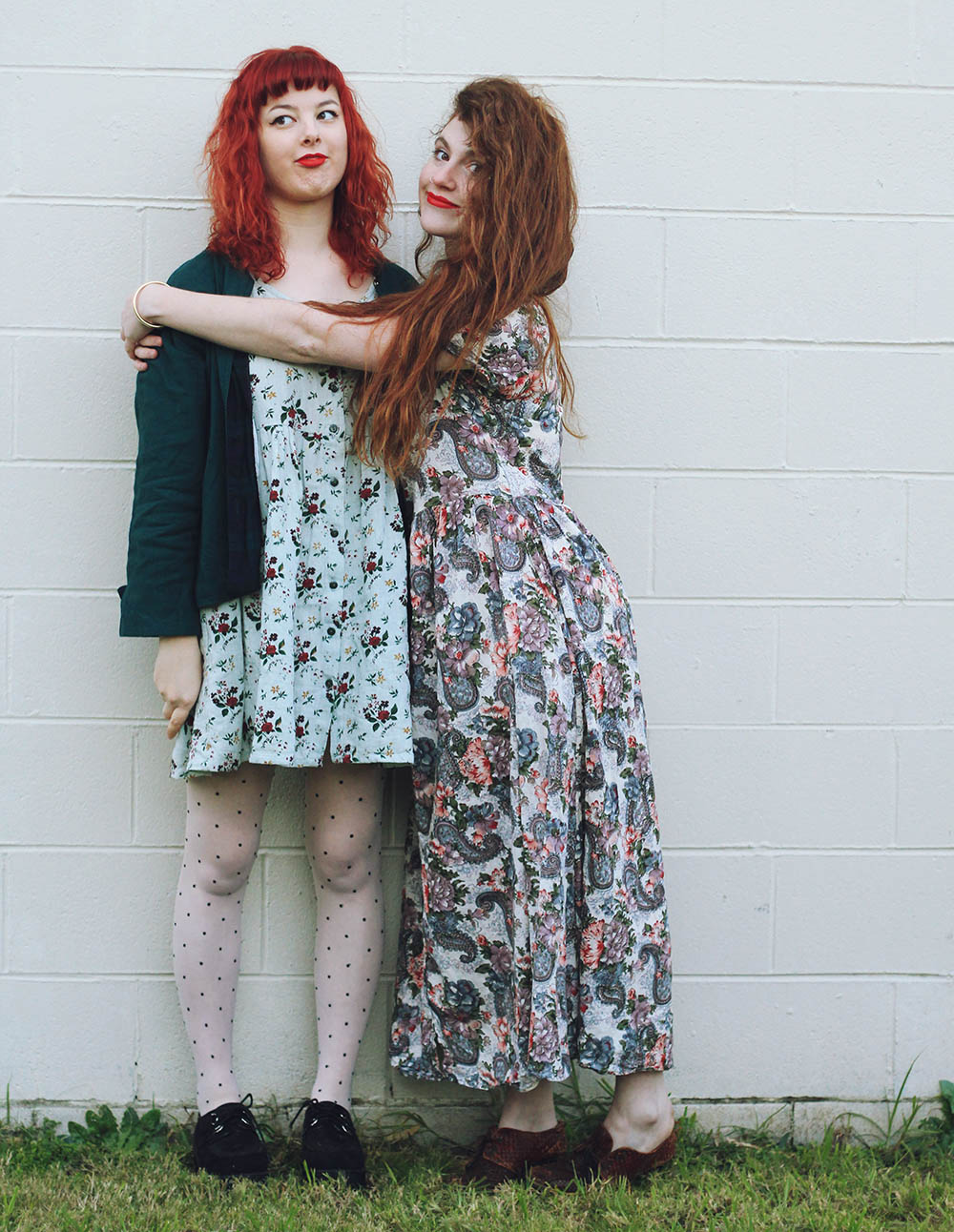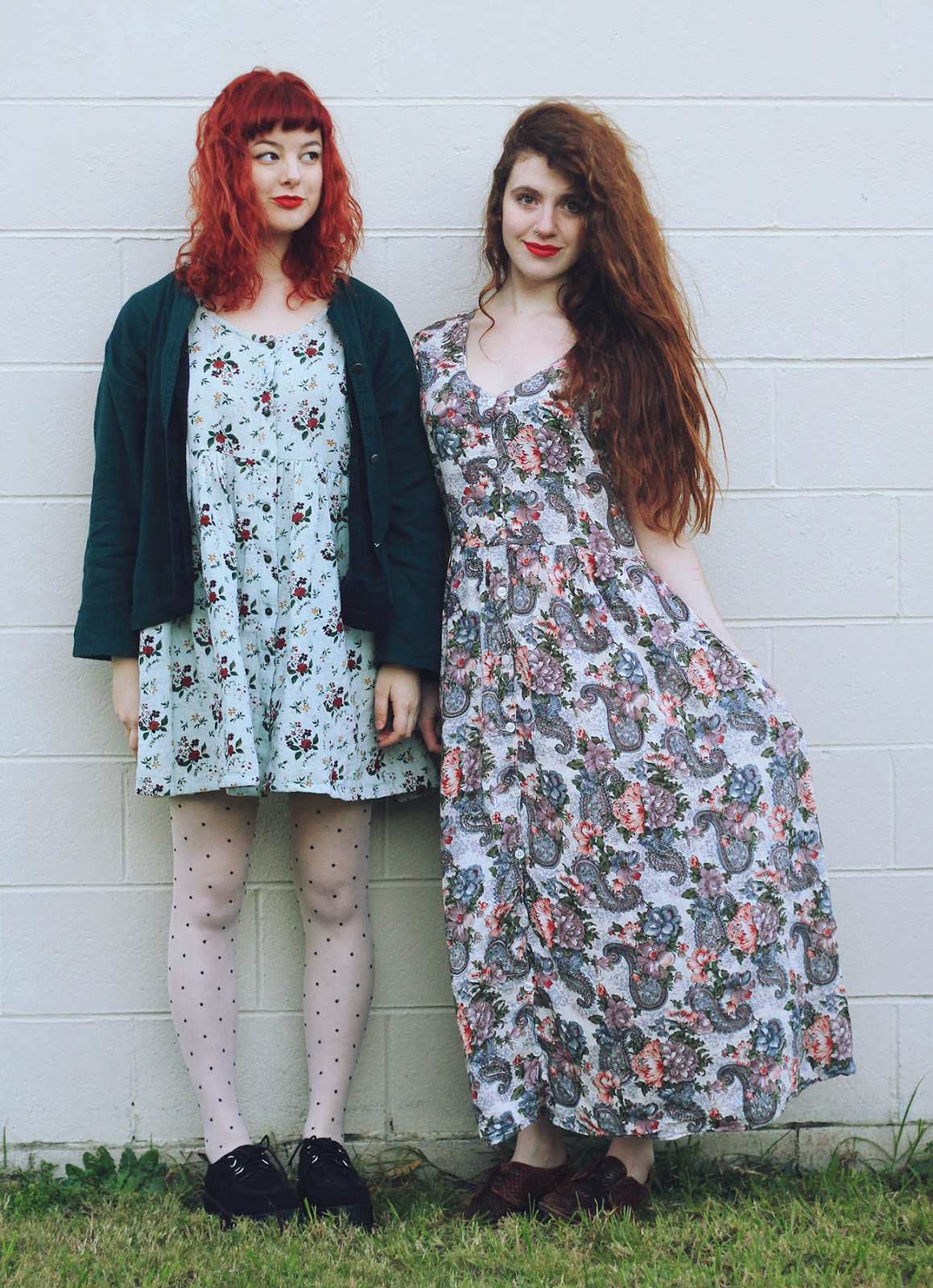 Dress and jacket are thrifted | tights are from Japan | shoes are c/o Chicwish (ages old, no longer for sale) | Katie's dress is thrifted (a gift from me!)