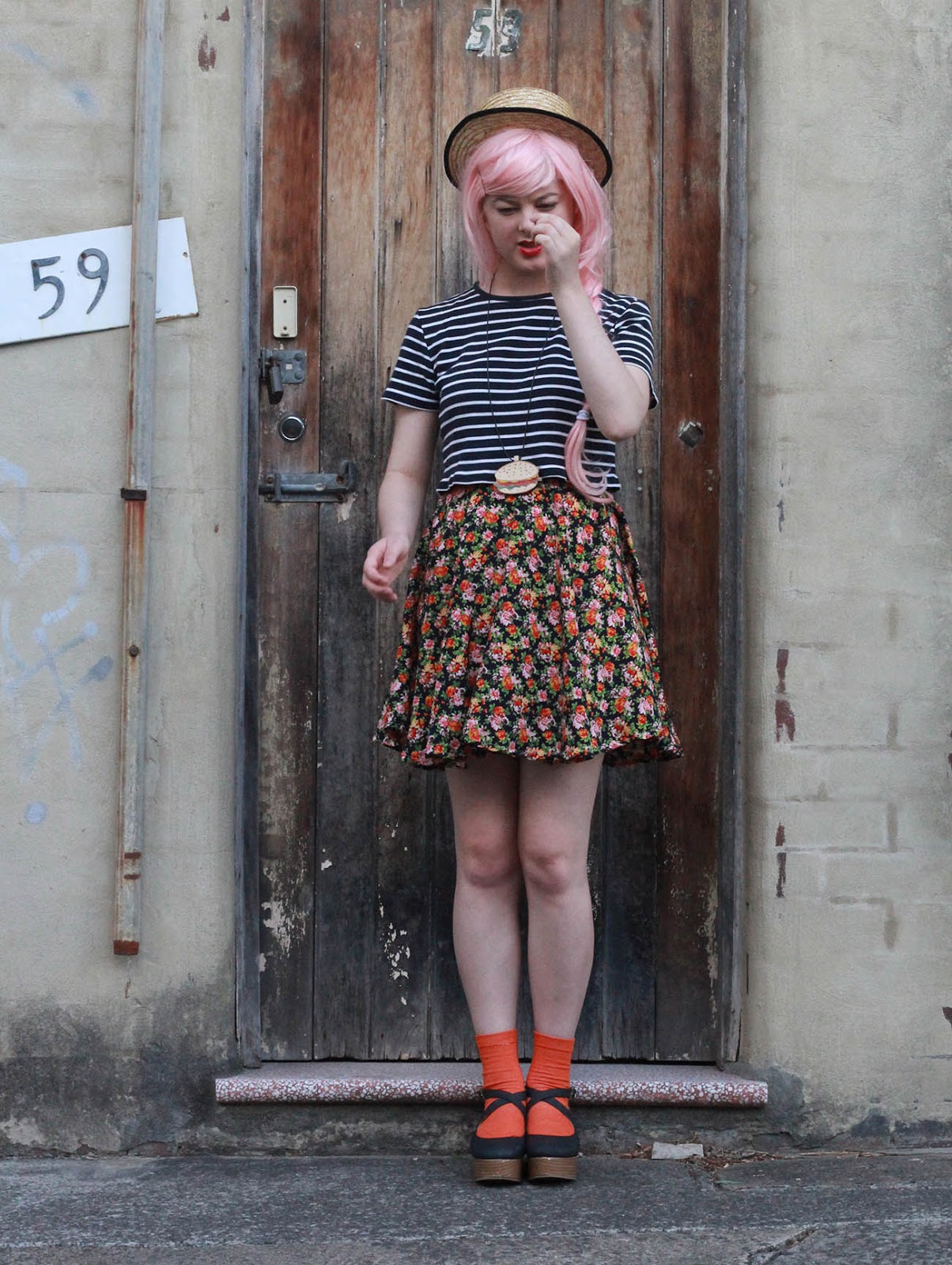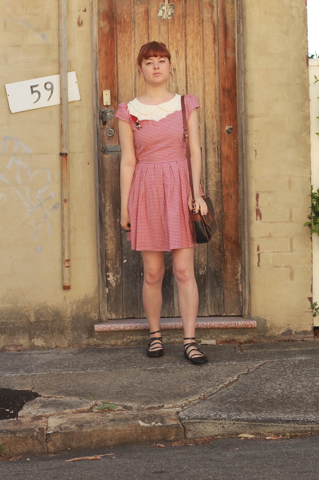 I had been obsessing over Katie's outfit all morning, and I think my repeated "oh my god Katie you look so amazing" was starting to get a bit creepy - so I was pretty happy that I got the perfect excuse to further obsess over her outfit from behind the lens of a camera. Click on over to her blog to see the photos that I took of her, and her amaaaaazing outfit! We actually both thrifted our dresses yesterday (on a trip to the op-shop where we were only meant to be dropping off old clothes we didn't want anymore - oops!)