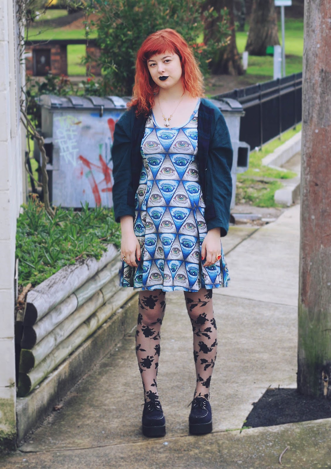Dress is second-hand from Katie (who i think got it from Dangerfield/Clear It) | necklace is c/o Eclectic Eccentricity | ring is c/o Ginger Pickle | tights and shoes are super old, so you can't buy them anymore | jacket is thrifted