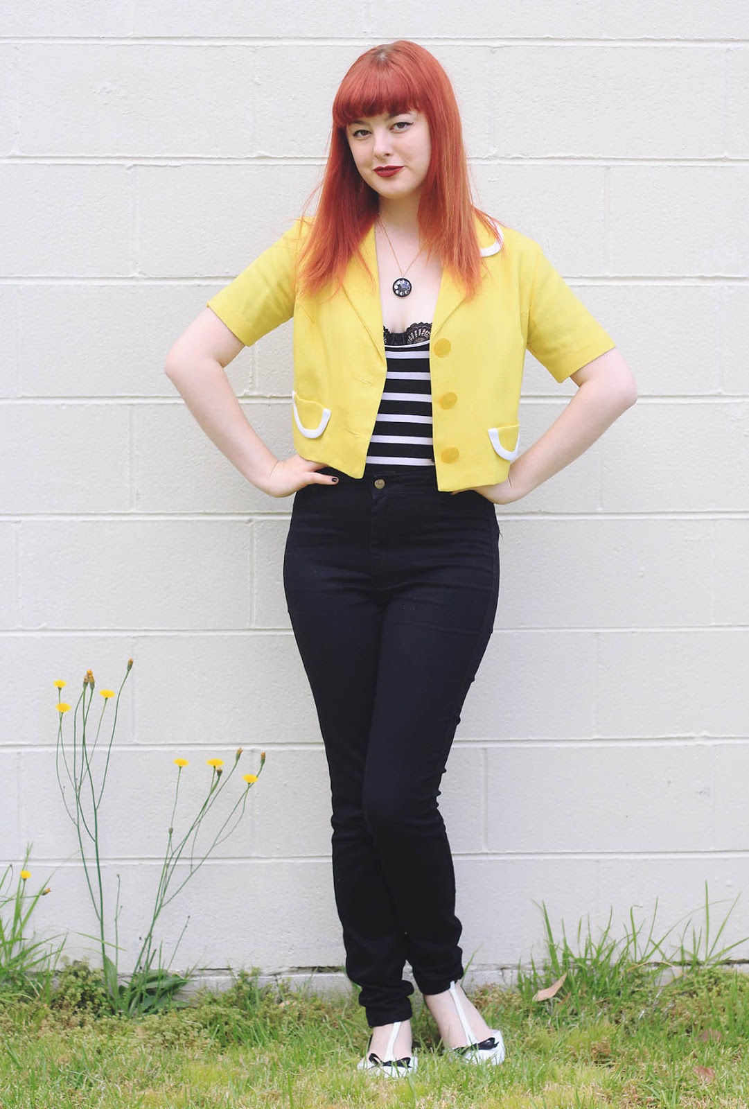top - thrifted | jacket - vintage | jeans - Dotti (old) | necklace - c/o Now or Never | bra - Dita Von Teese | shoes - Yeswalker (old)