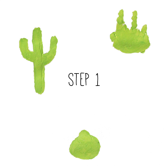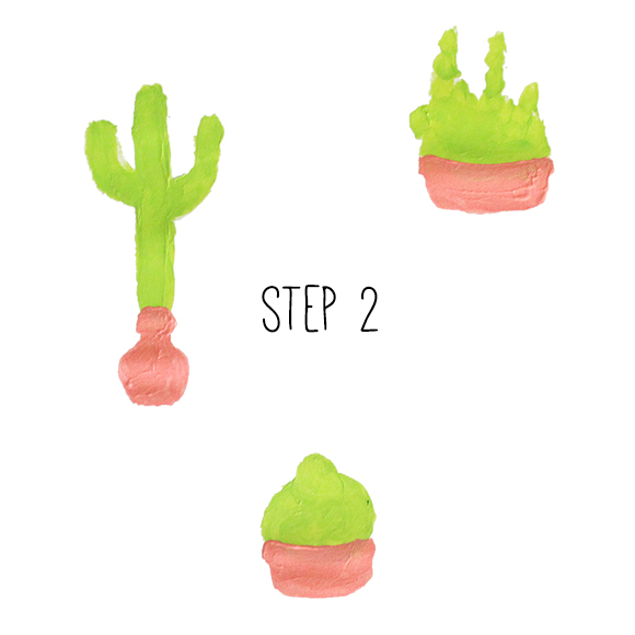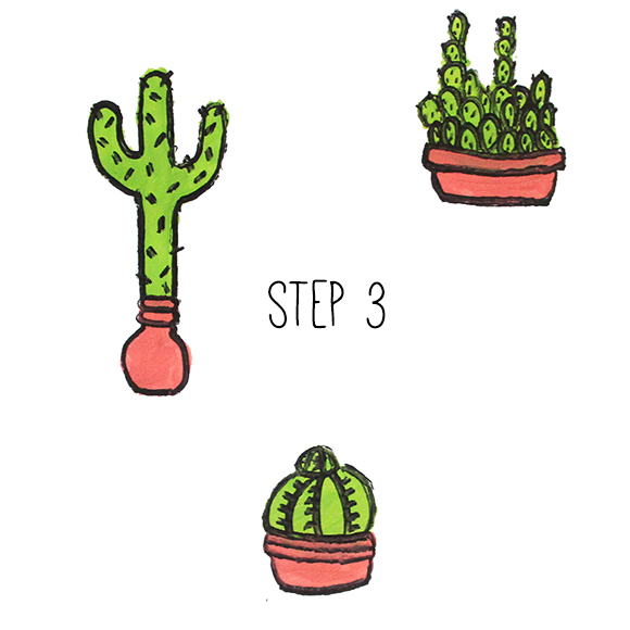 Using permanent marker, draw an outline around your shapes, and then add cactus bits and spikes like in the above example (note: wait until the paint is DRY before attempting this).