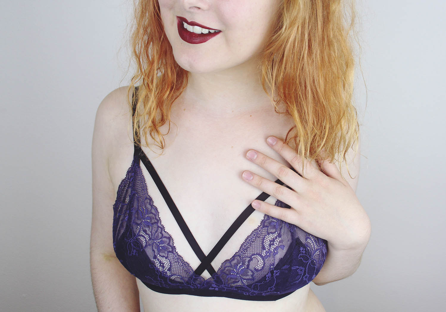 I also forced Katie to let me make her a bralette (...she didn't exactly complain), so that I could test my pattern out on a different sized body, and increase my sample size for the pattern to 2. The only thing I did wrong here, as you can see, was that the caged elastic straps are too tight - so don't do that, if you're making your own!